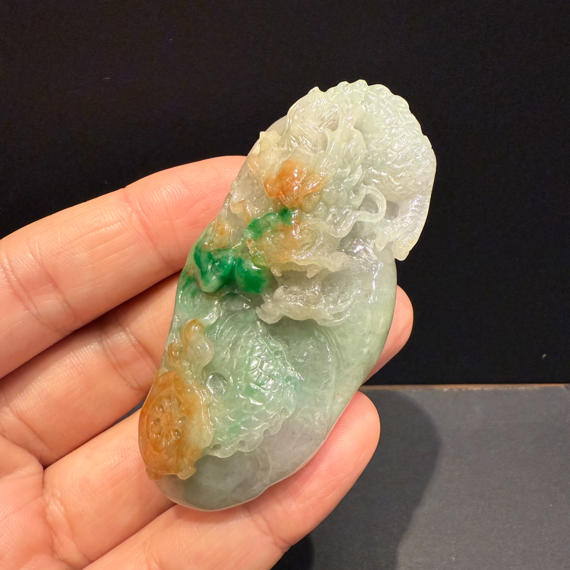 《龍起雲海・掌舵轉運》天然翡翠雕件|70.8×34.8×18.8mm