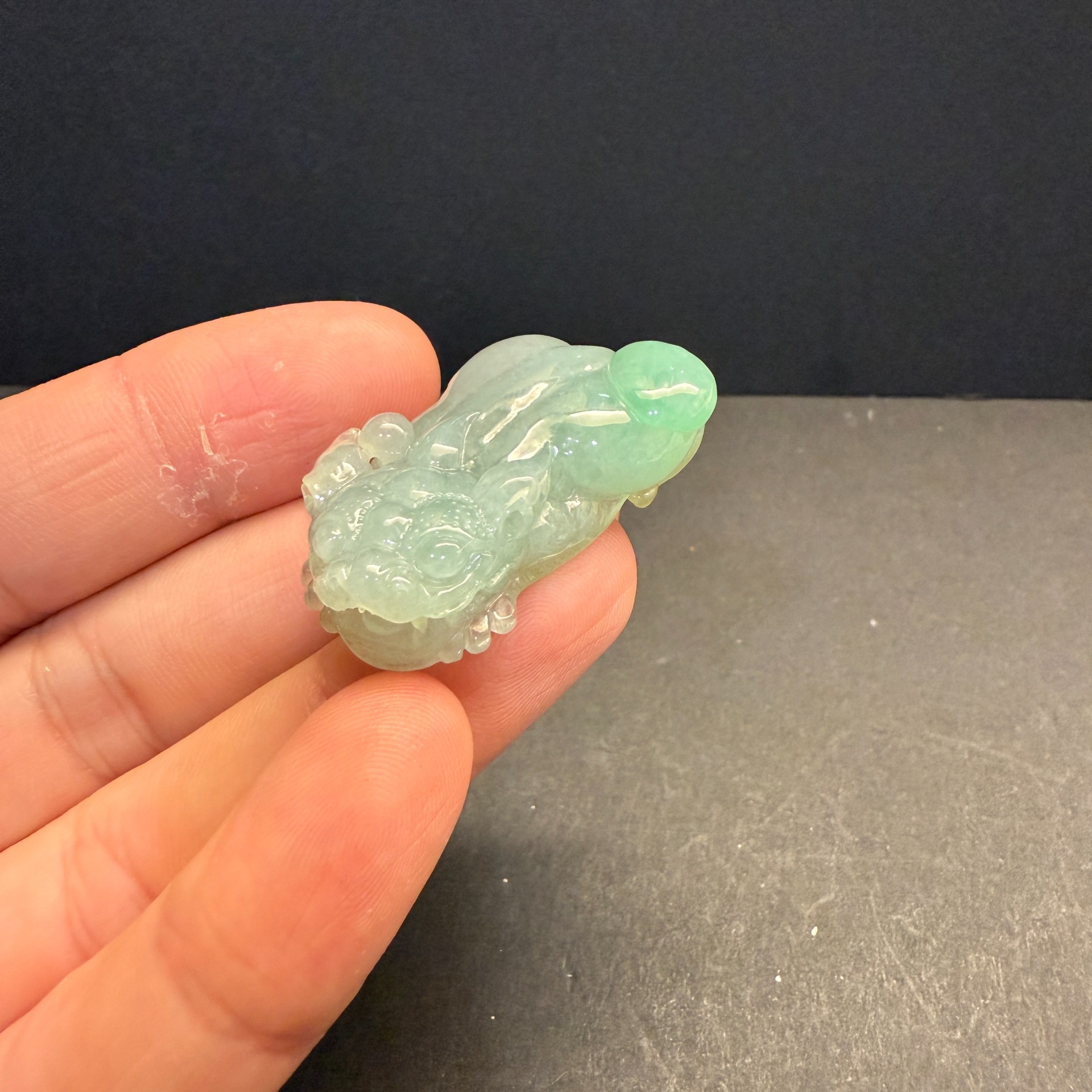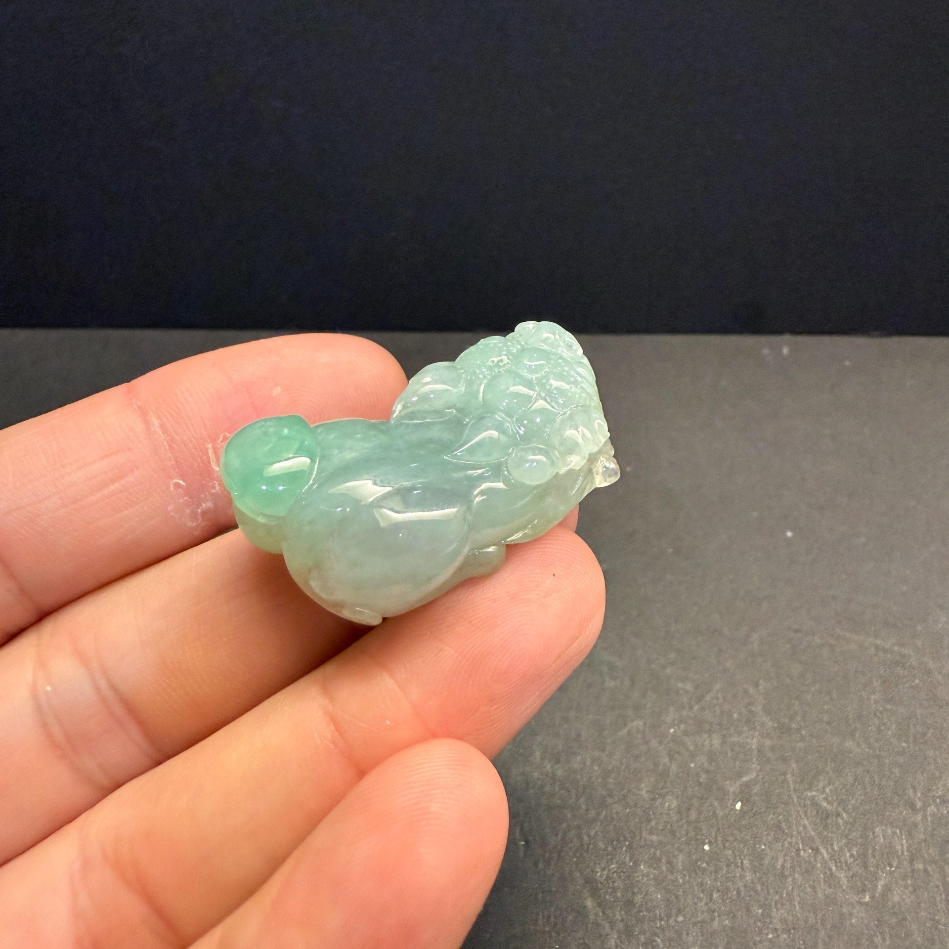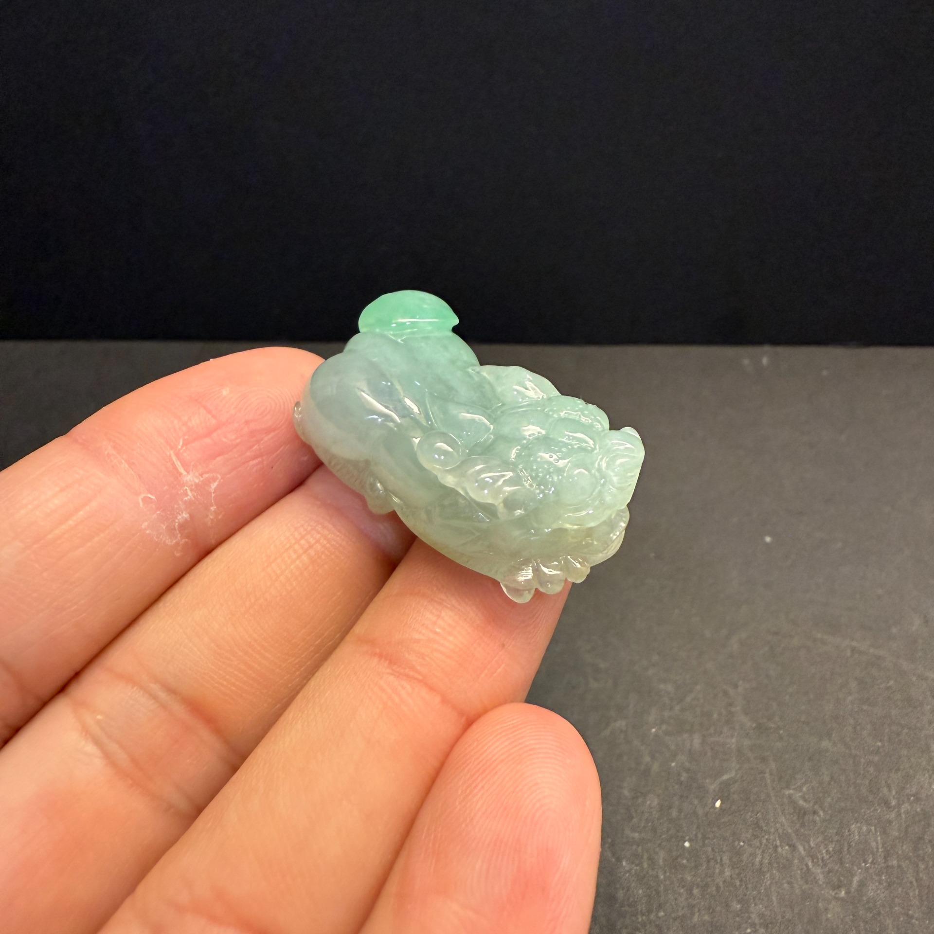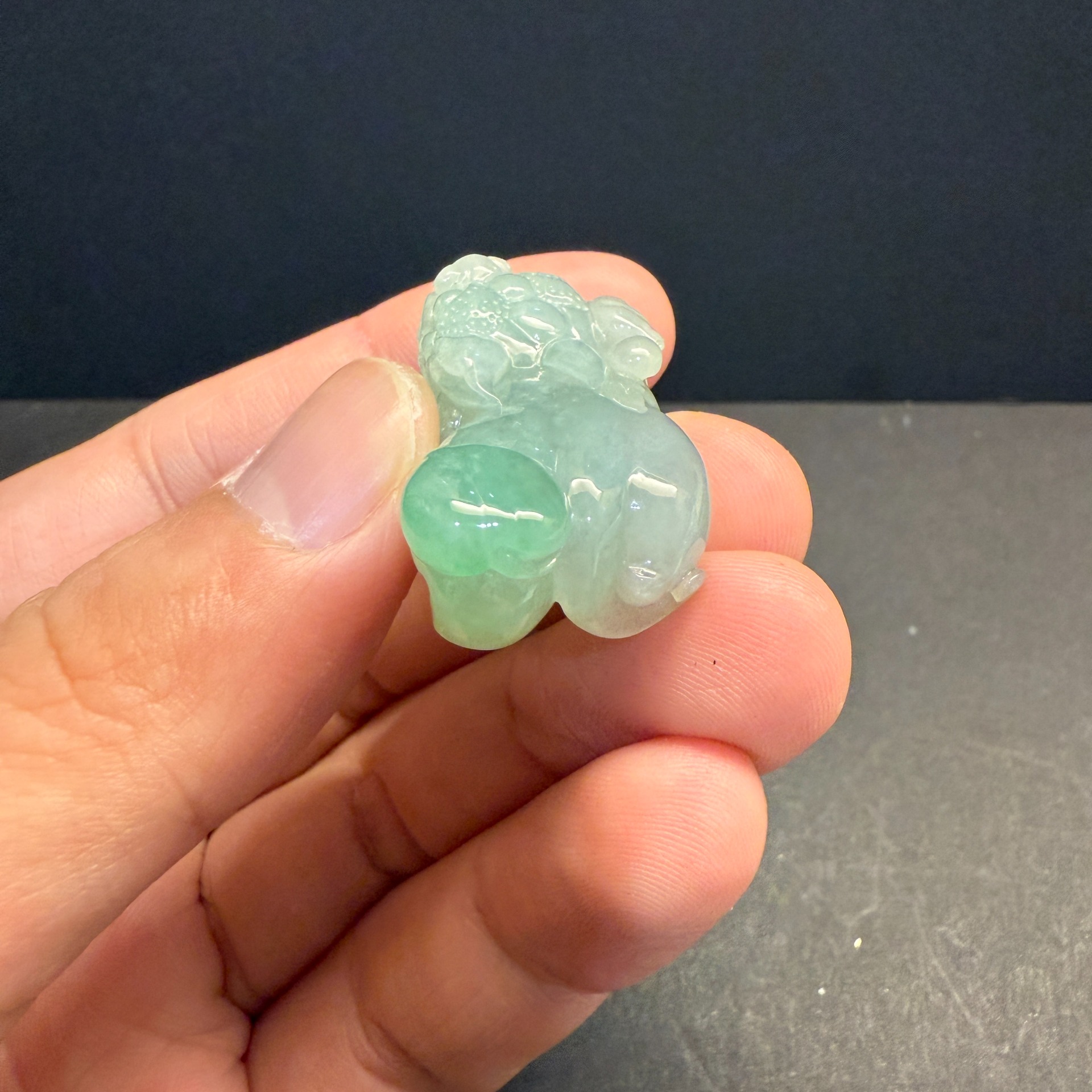 貔貅象徵納財辟邪,護主守財;尺寸精巧(34.4×20.5×11.1mm),佩戴輕盈不失氣勢。最驚喜的是——價格親民,卻藏著不凡的美色,尤其是背部那抹天然翠意,如春山含笑,靜靜流轉。