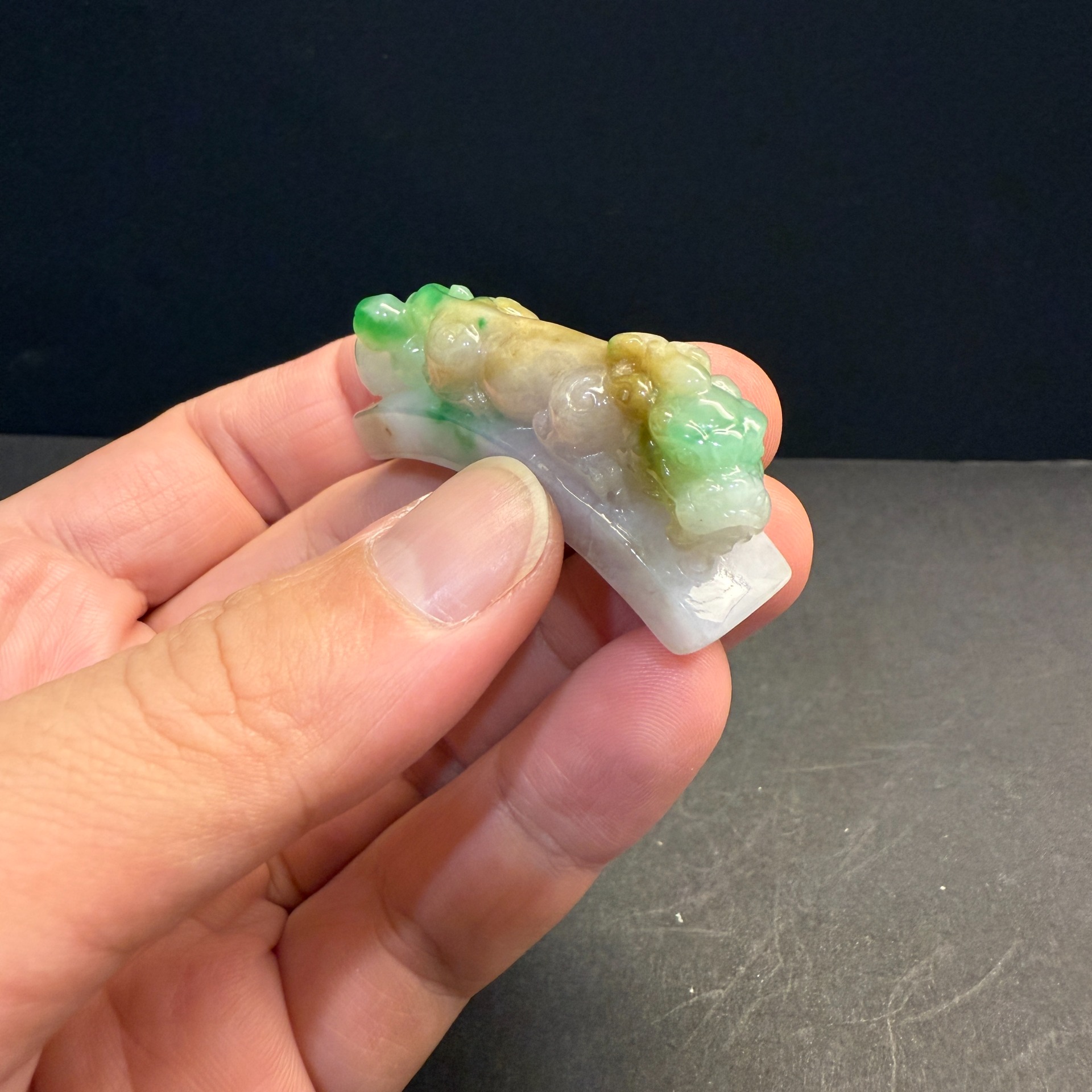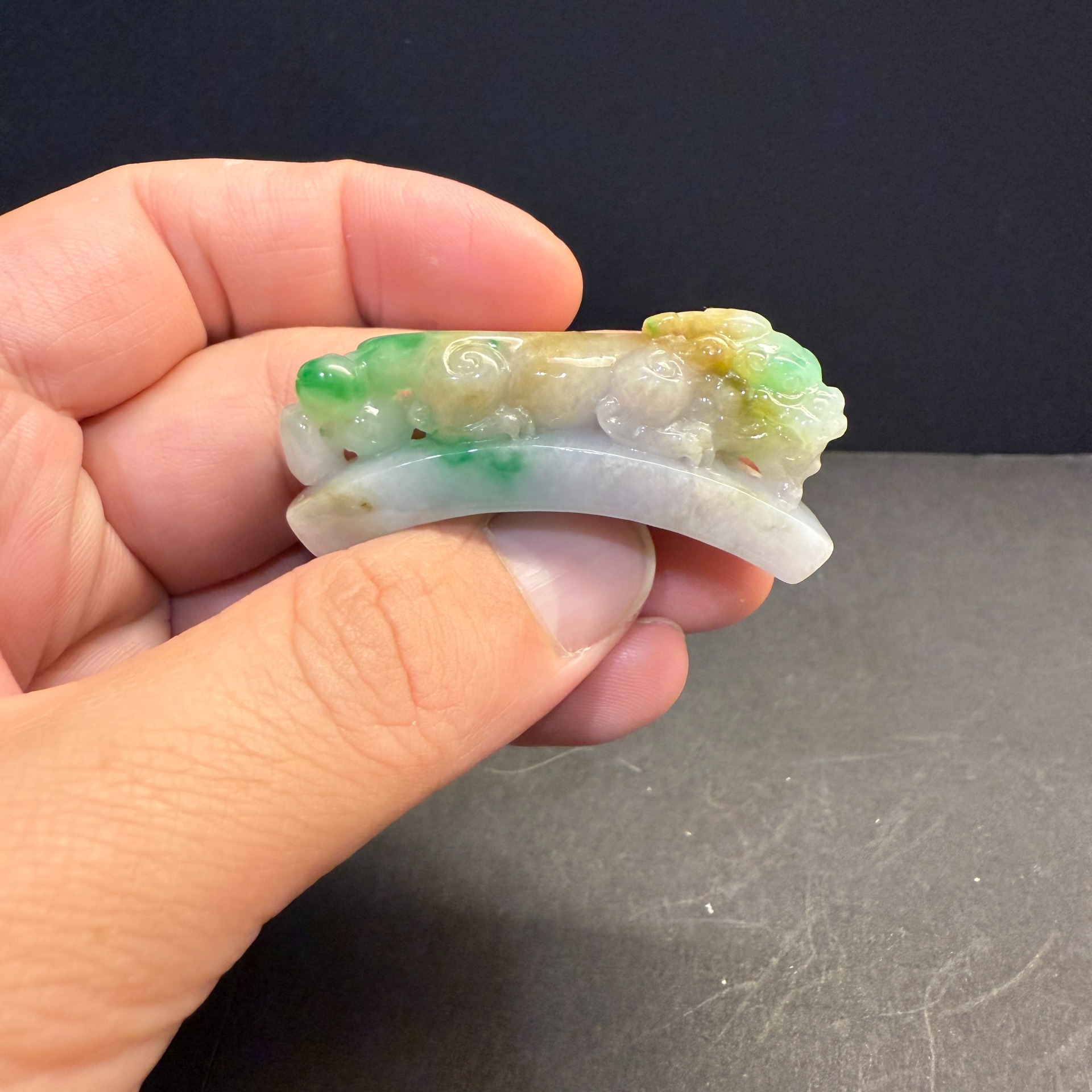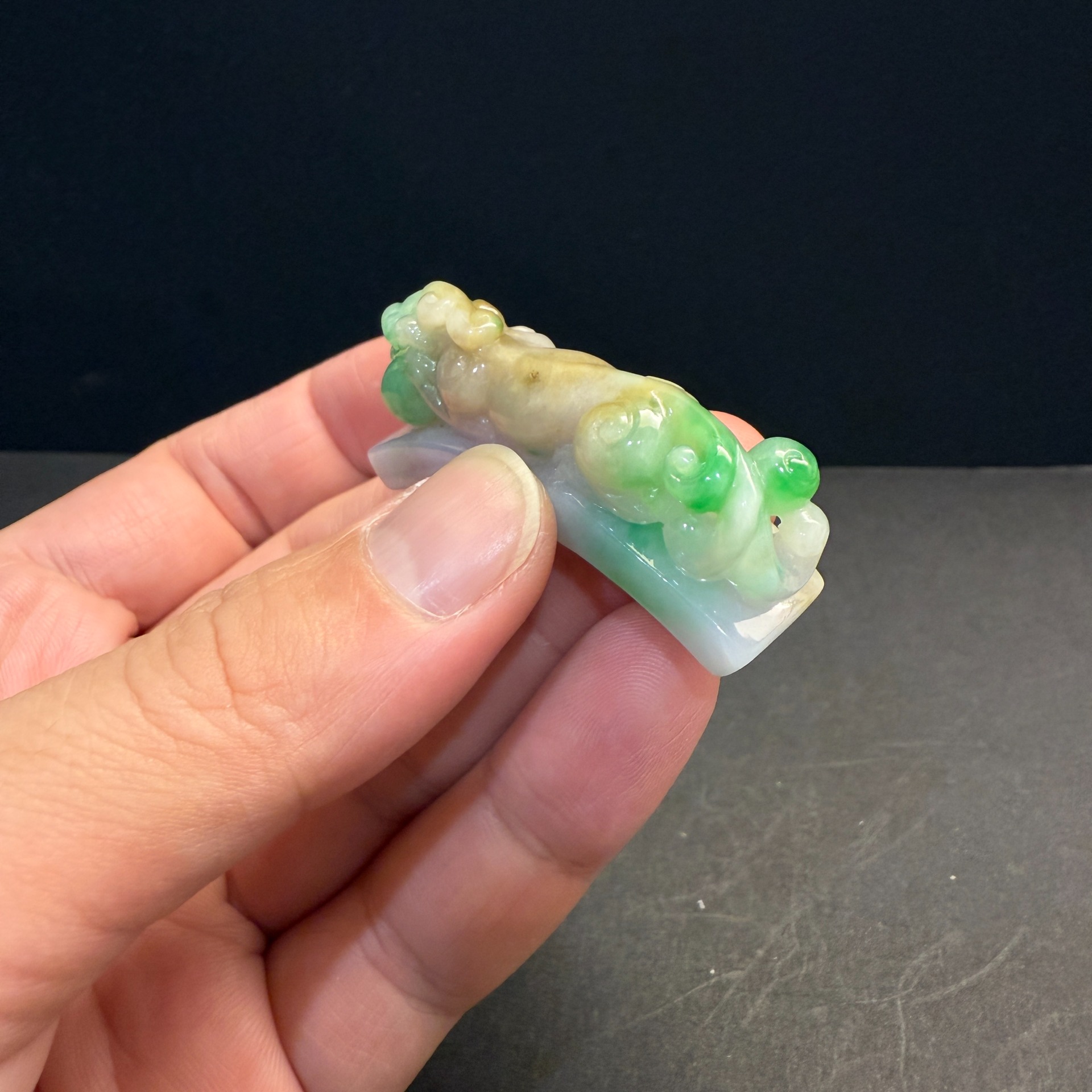 瀚玉珠寶 天然三彩翡翠 老三彩貔貅勾 辣色搶眼 天然緬甸玉小擺件