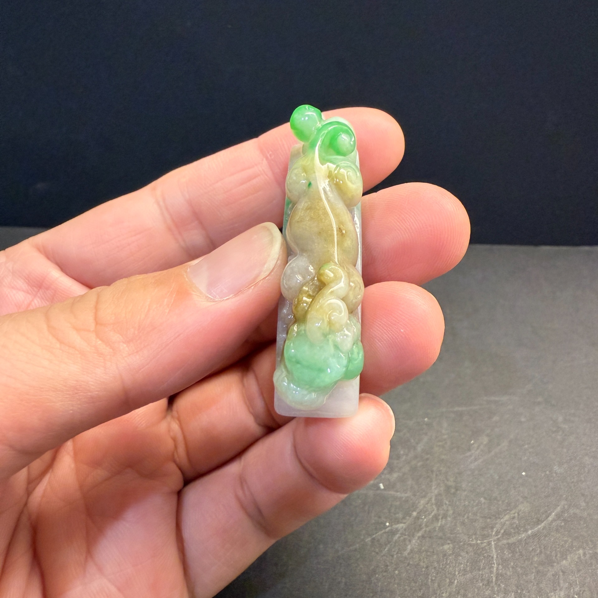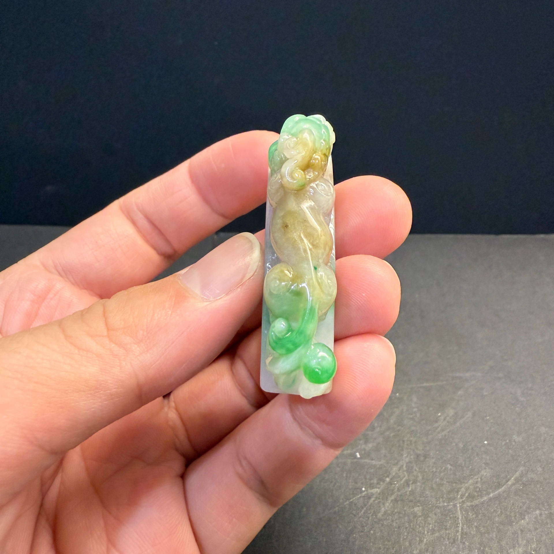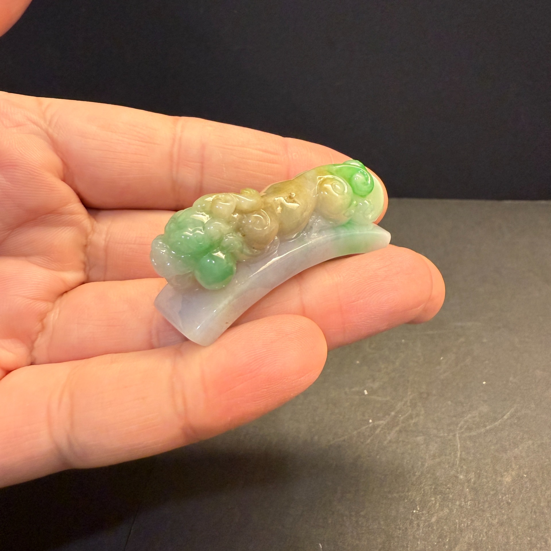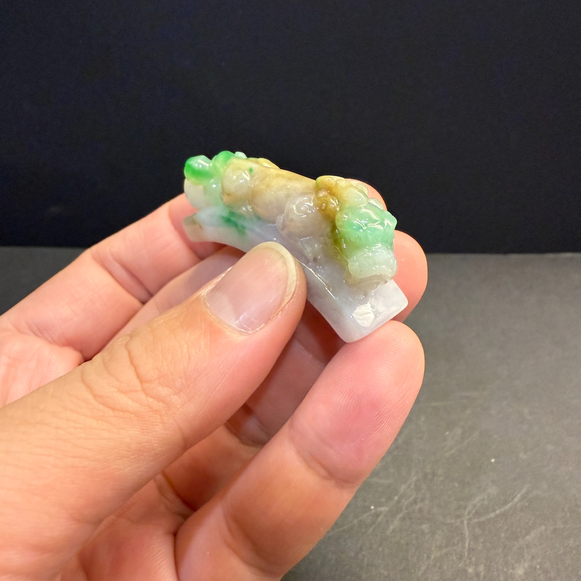 瀚玉珠寶 天然三彩翡翠 老三彩貔貅勾 辣色搶眼 天然緬甸玉小擺件