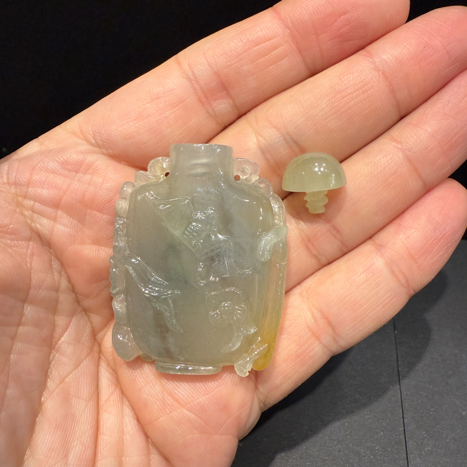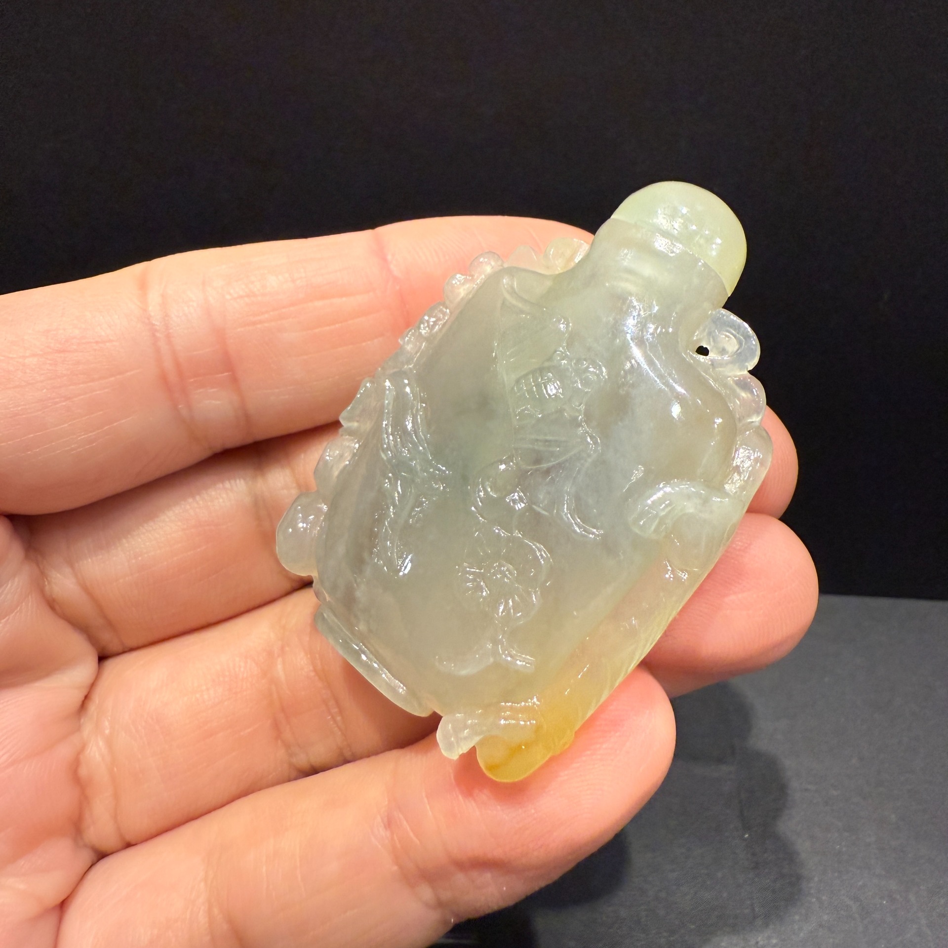 瀚玉珠寶 天然冰種翡翠 冰種黃翡鼻煙壺 冰種鼻煙壺 緬甸玉 螺絲可開蓋 附上賴泰安證書\\
