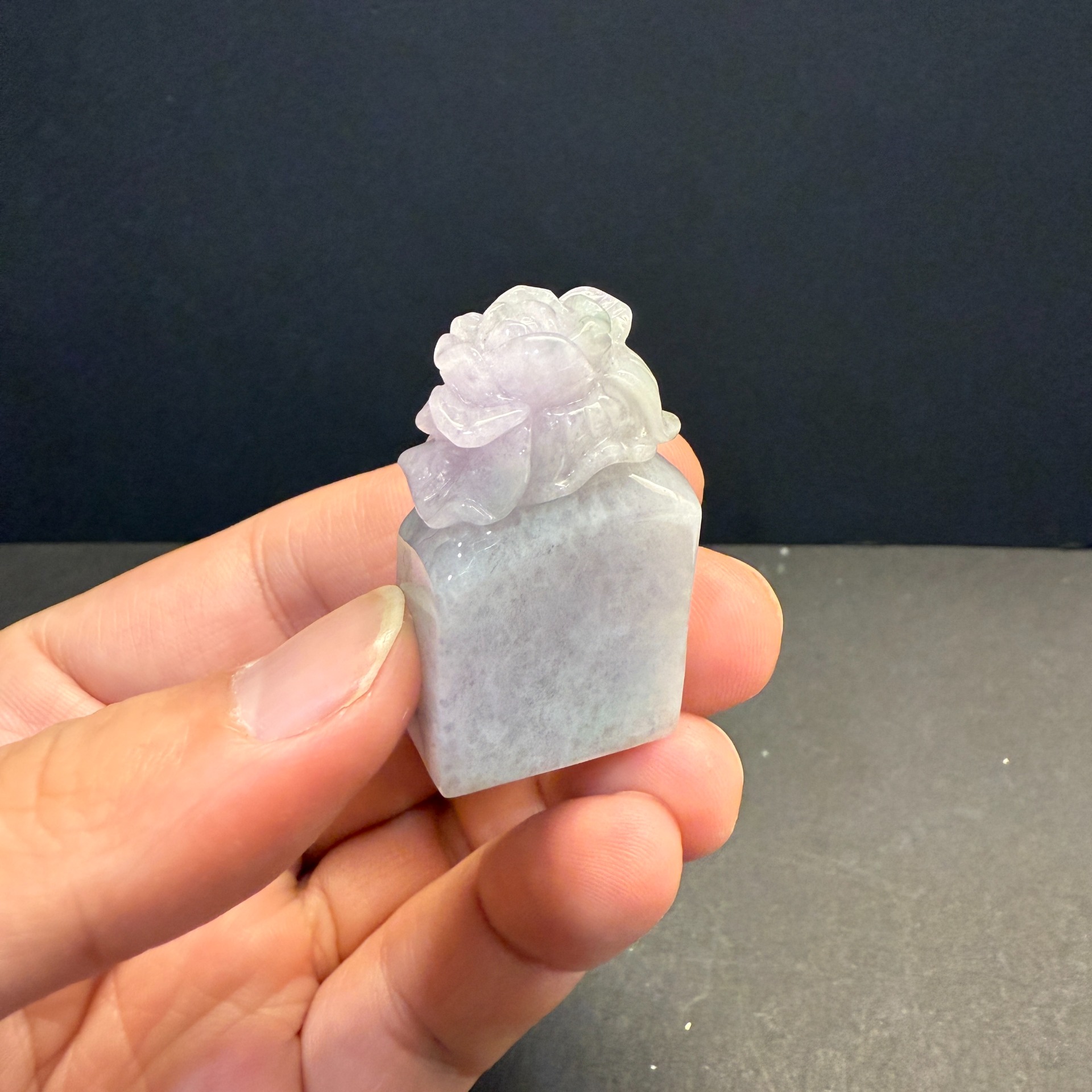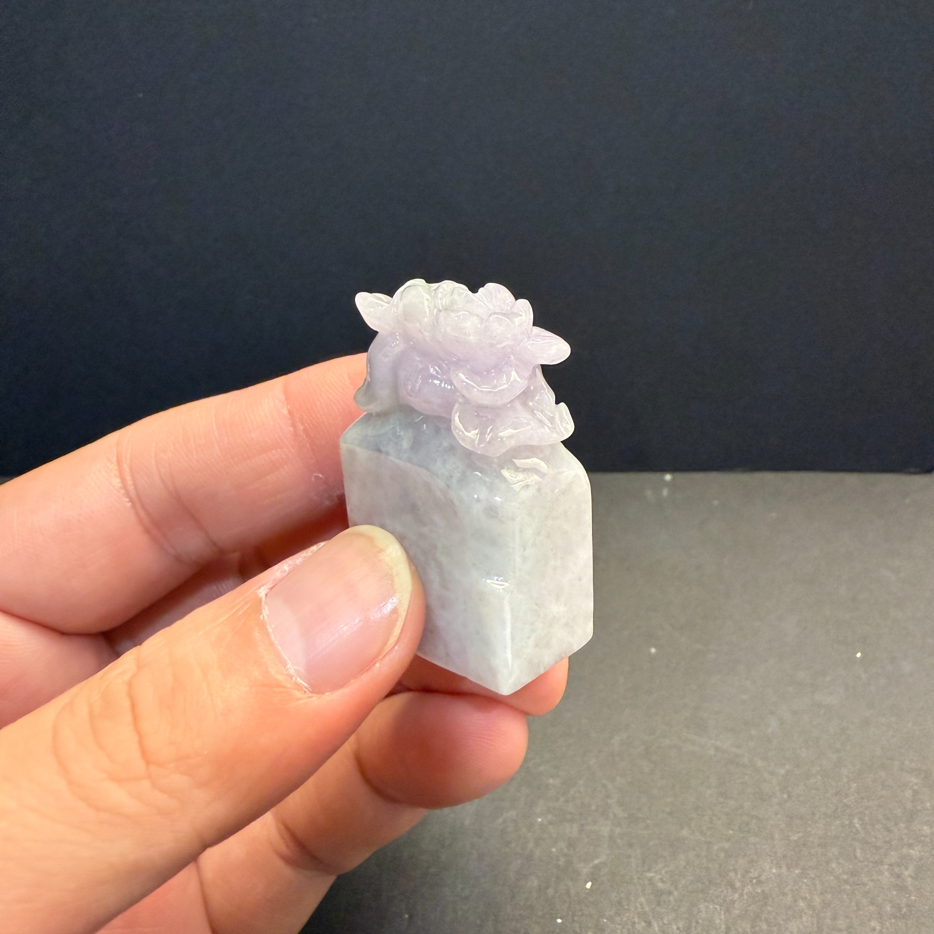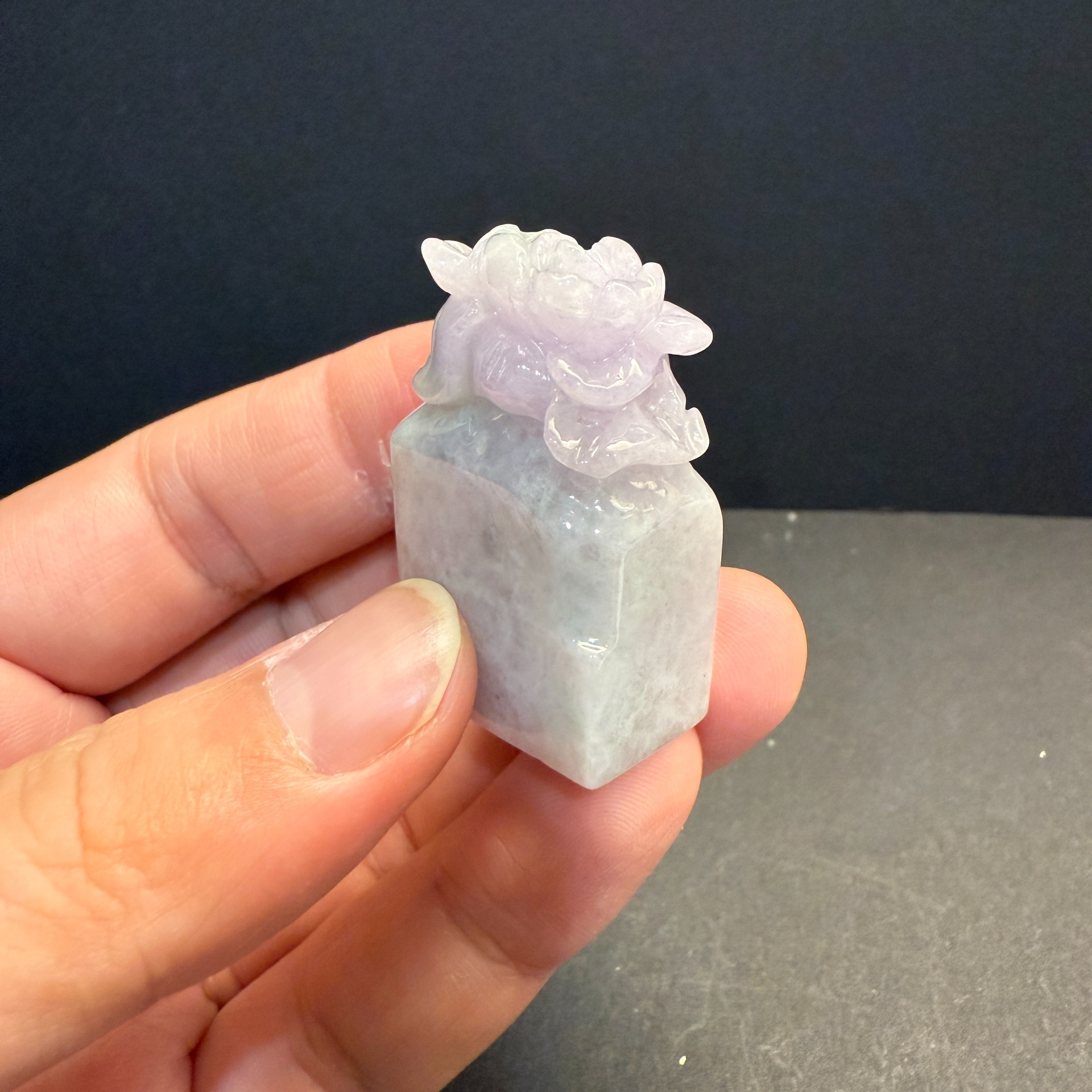 瀚玉珠寶 天然紫羅蘭翡翠印章 花花印章 蓮花印章 紫羅蘭蓮花印章 方章 天然緬甸玉印