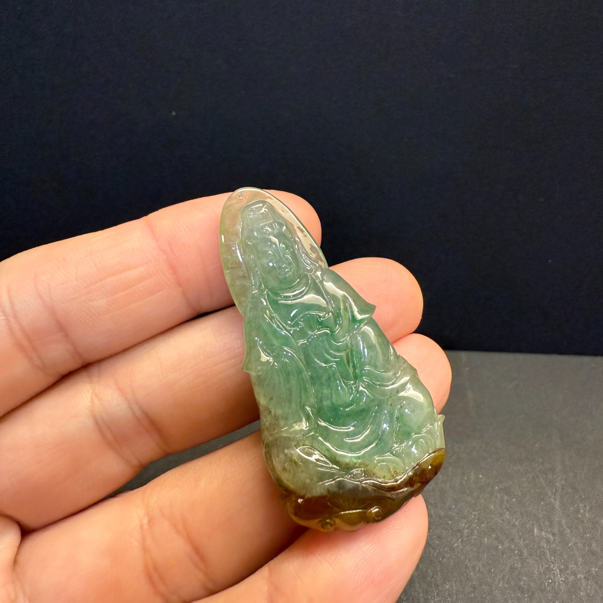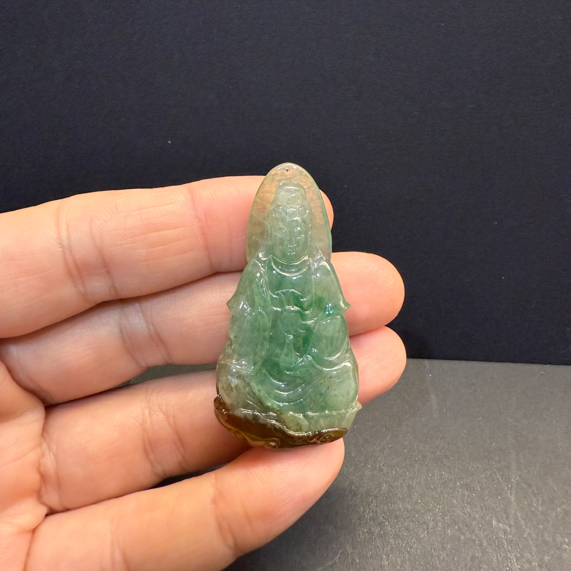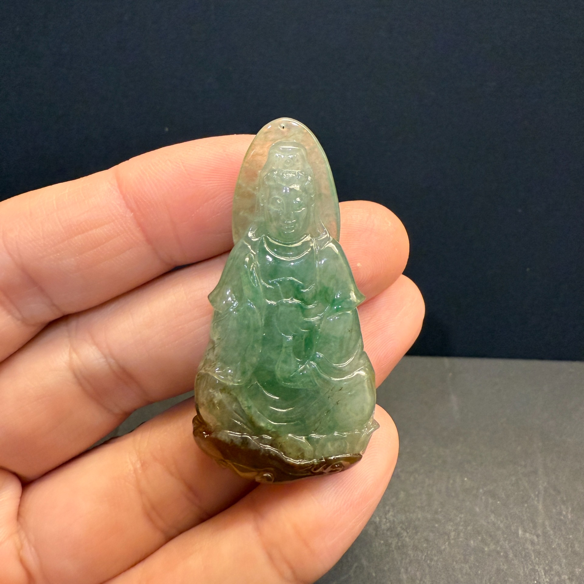瀚玉珠寶 天然緬甸三彩翡翠 寶瓶三彩觀音 保平觀音 天然A貨翡翠 附賴泰安證書