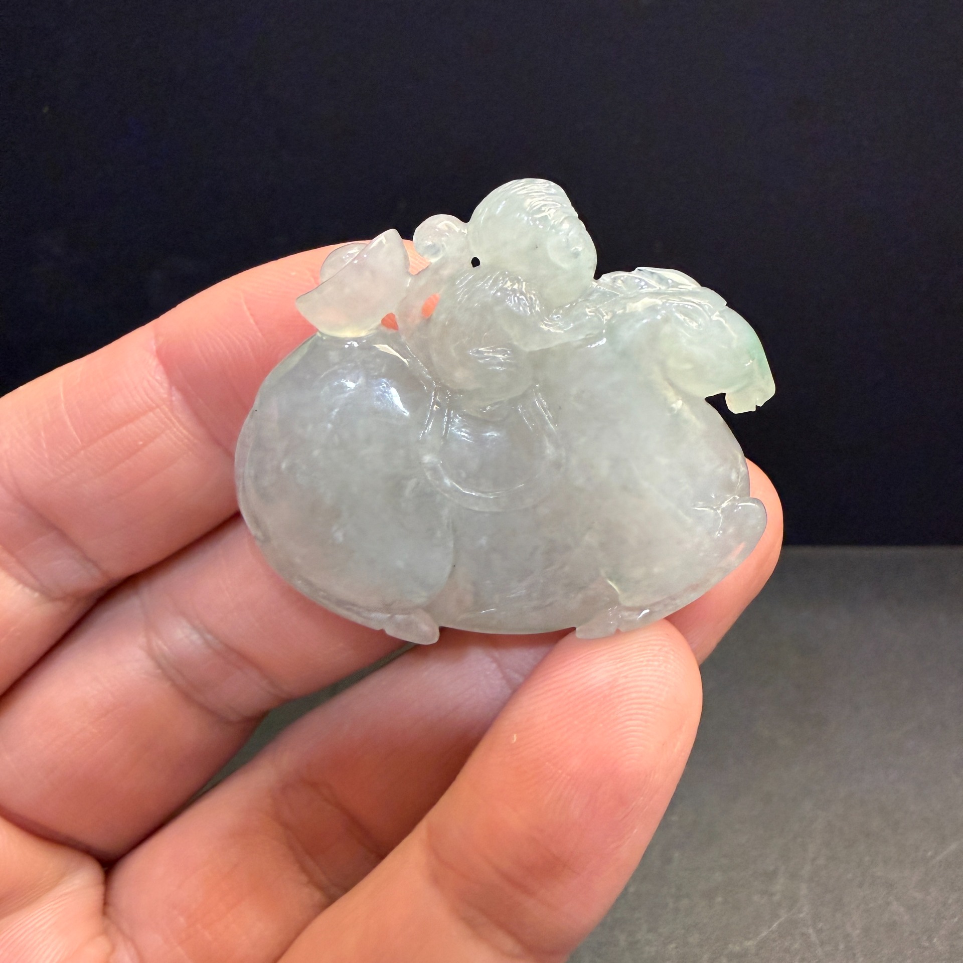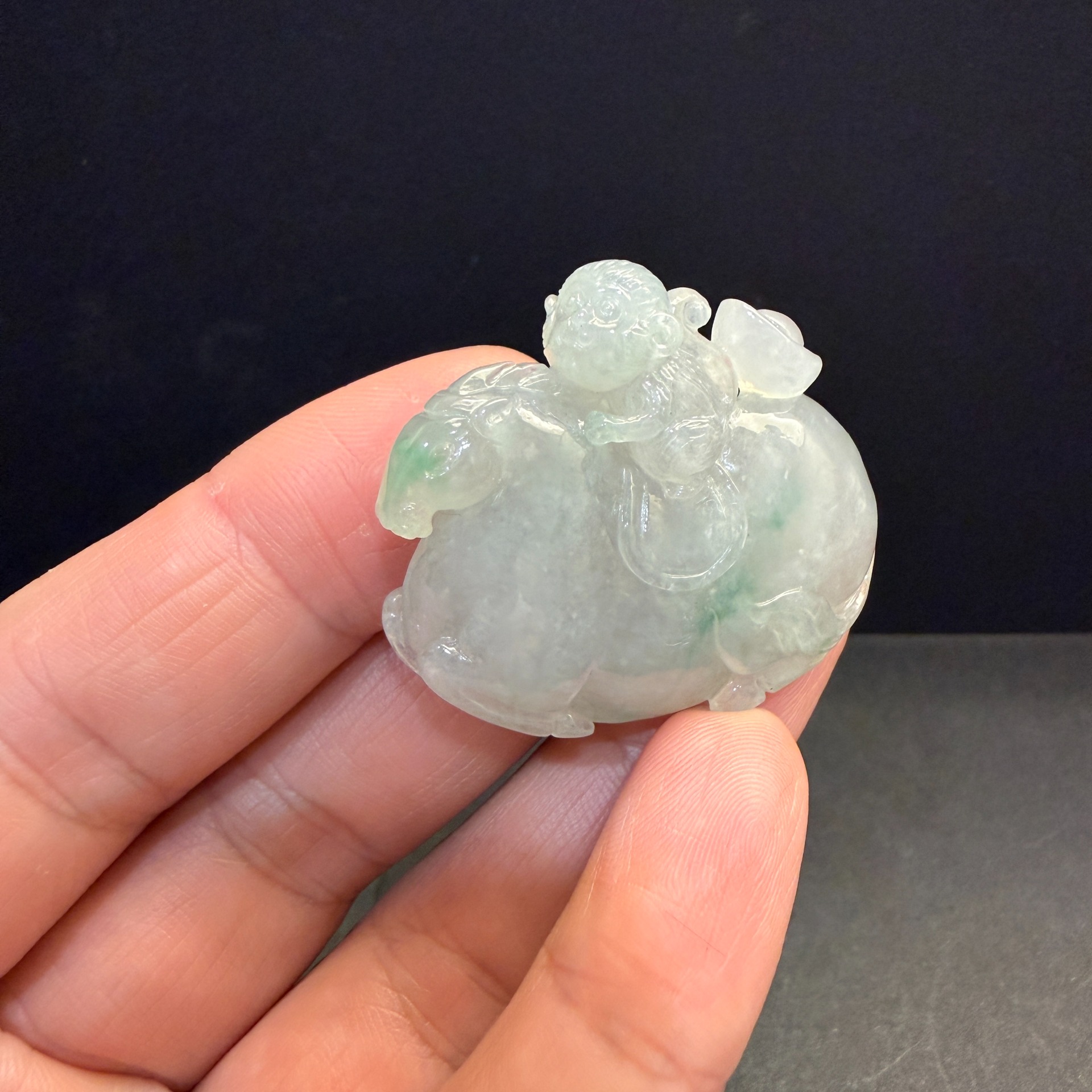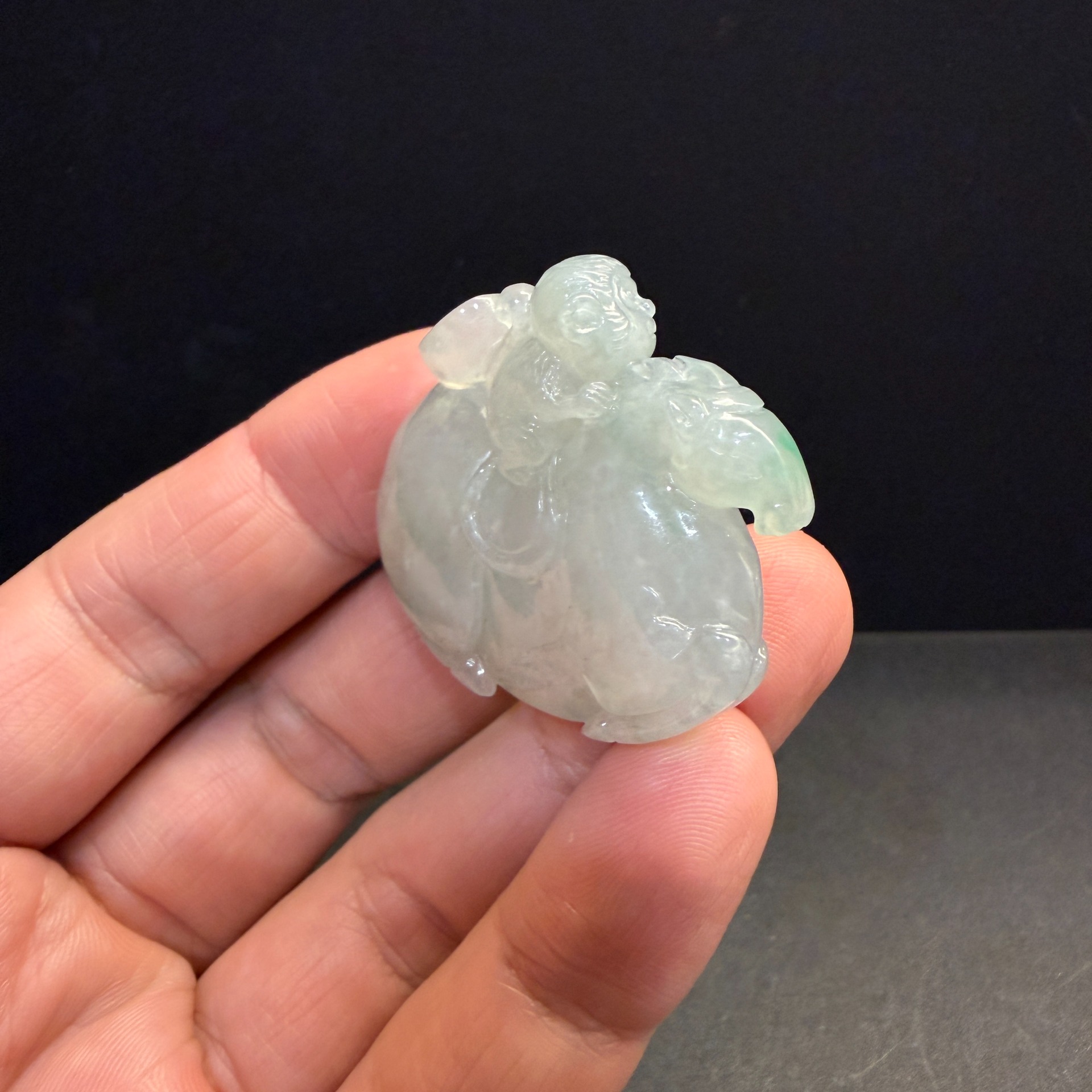 瀚玉珠寶 天然緬甸產翡翠 冰種帶綠 馬上封侯+馬上有錢 緬甸玉翡翠墜子 小擺件