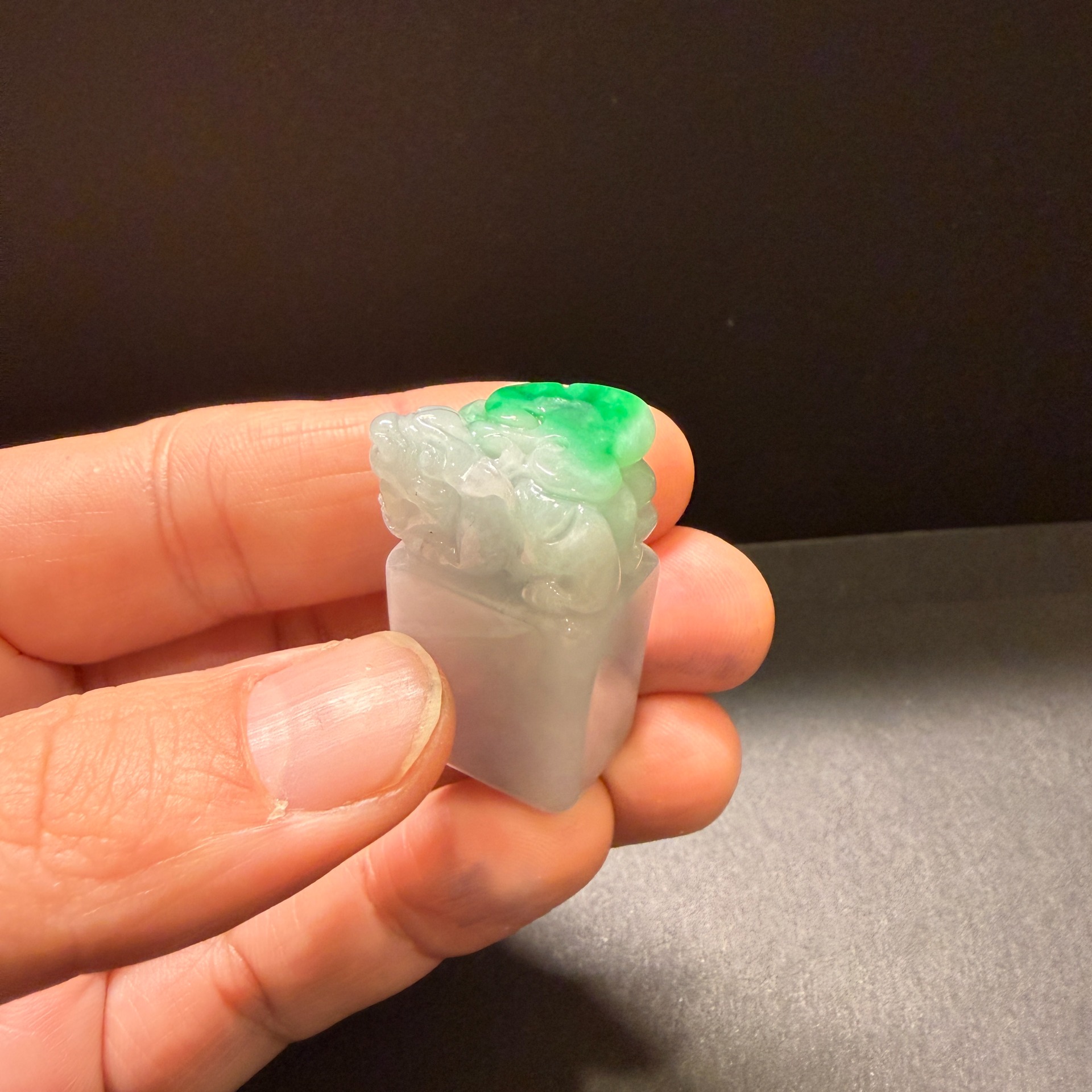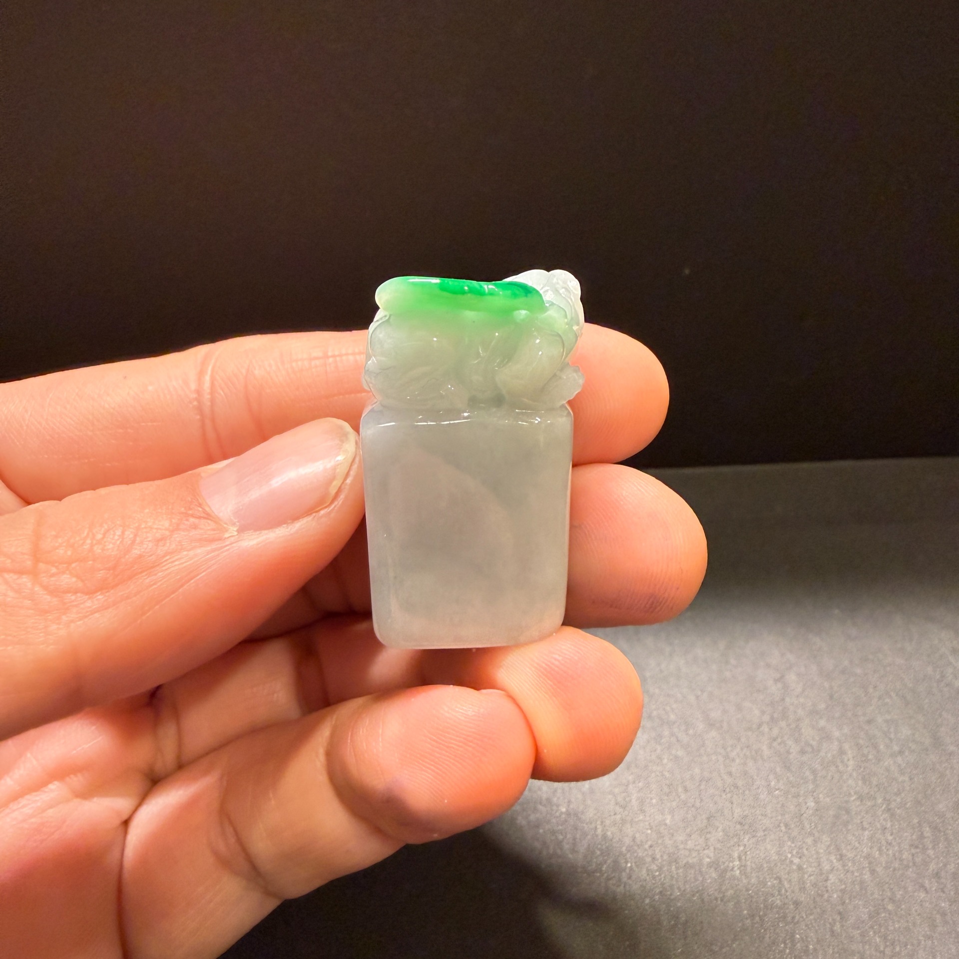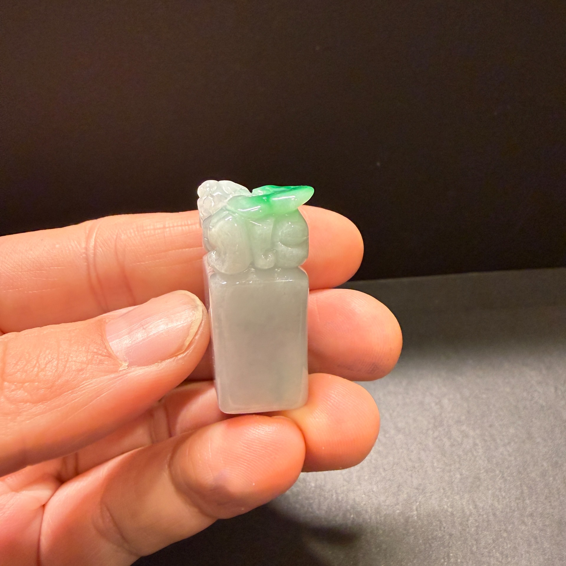 瀚玉珠寶 天然緬甸產翡翠 白底青辣綠貔貅印章 白底青翡翠 開運印章 送禮好物 生日禮 附上精美錦盒和袋子