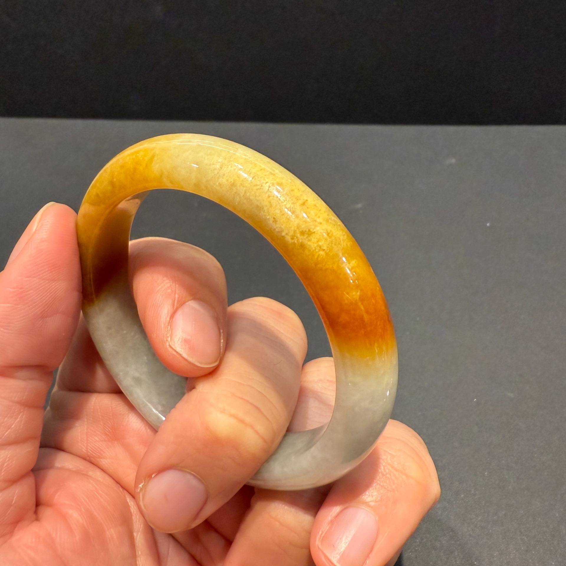 瀚玉珠寶 天然緬甸產翡翠 蜜糖黃手鐲 緬甸玉手鐲 黃翡手鐲 17.5圍