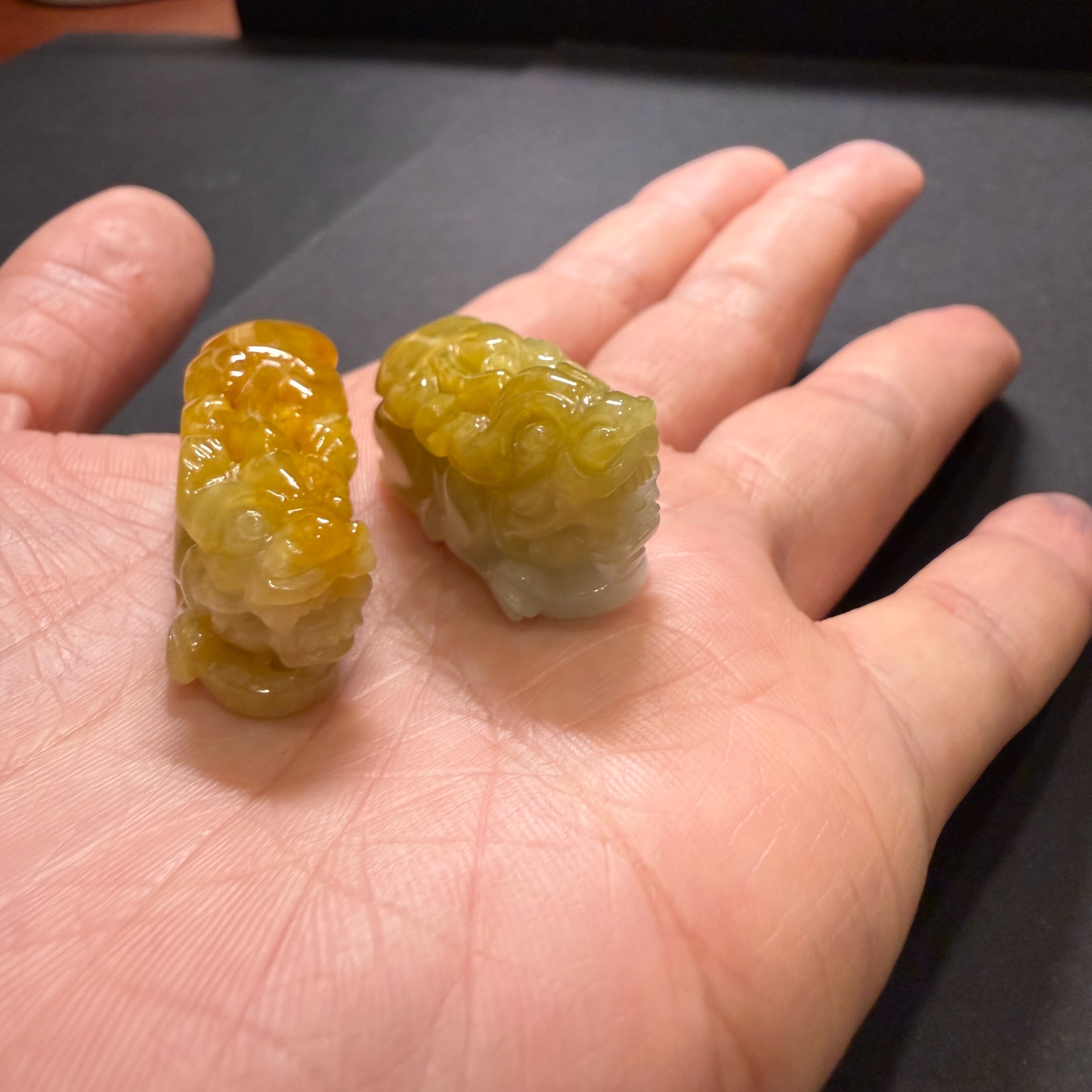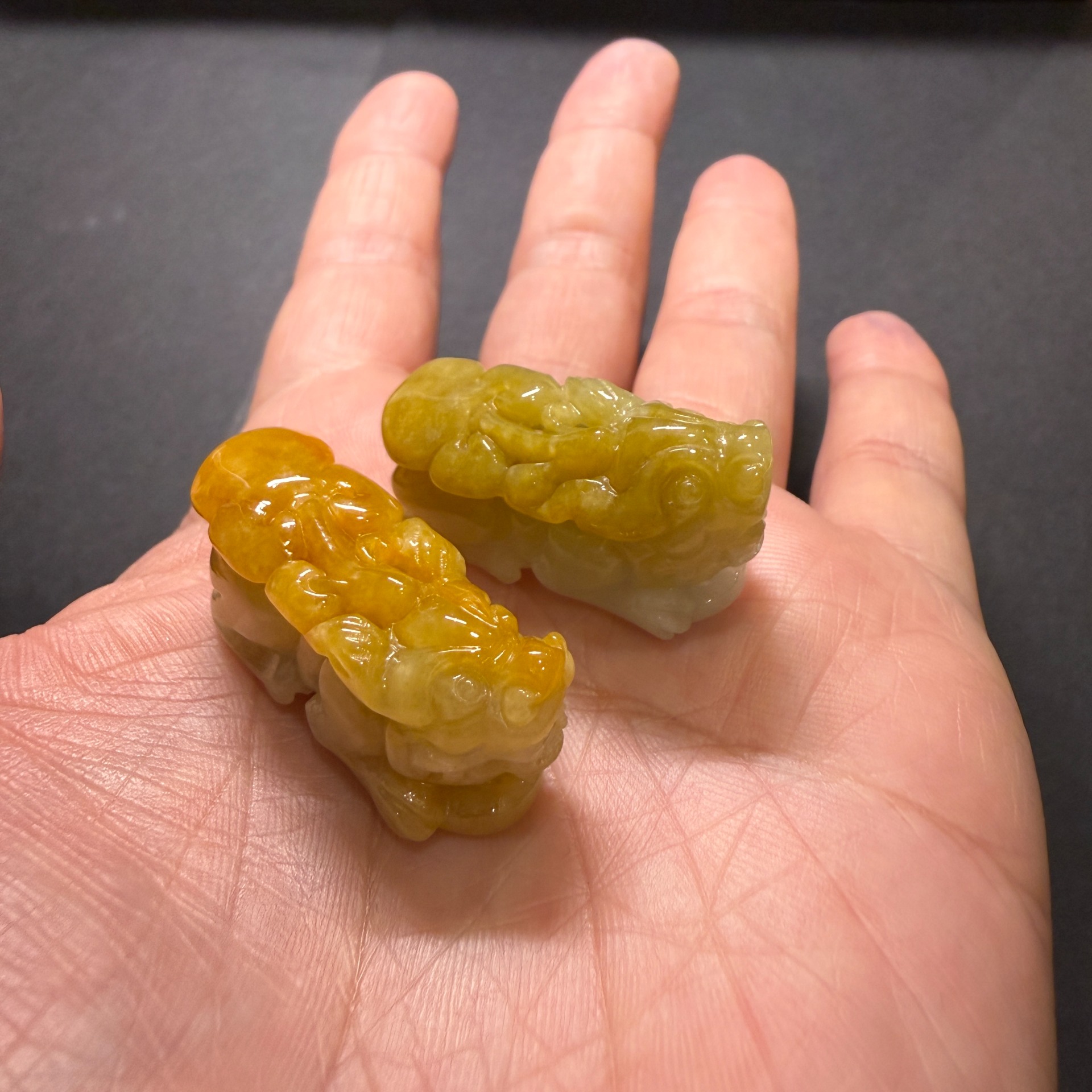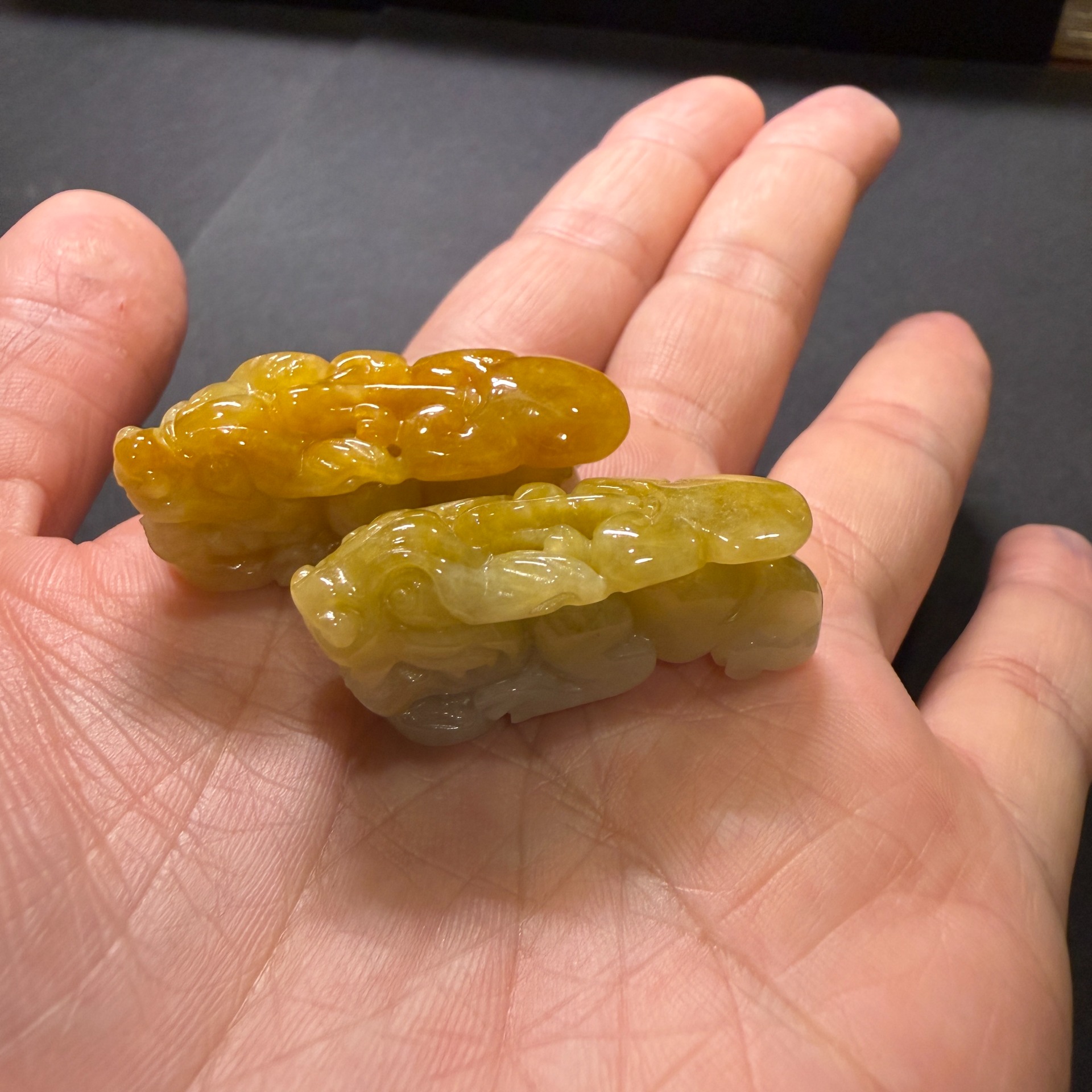 瀚玉珠寶 天然緬甸產翡翠 黃翡貔貅一對 招財避邪保平安 貔貅
