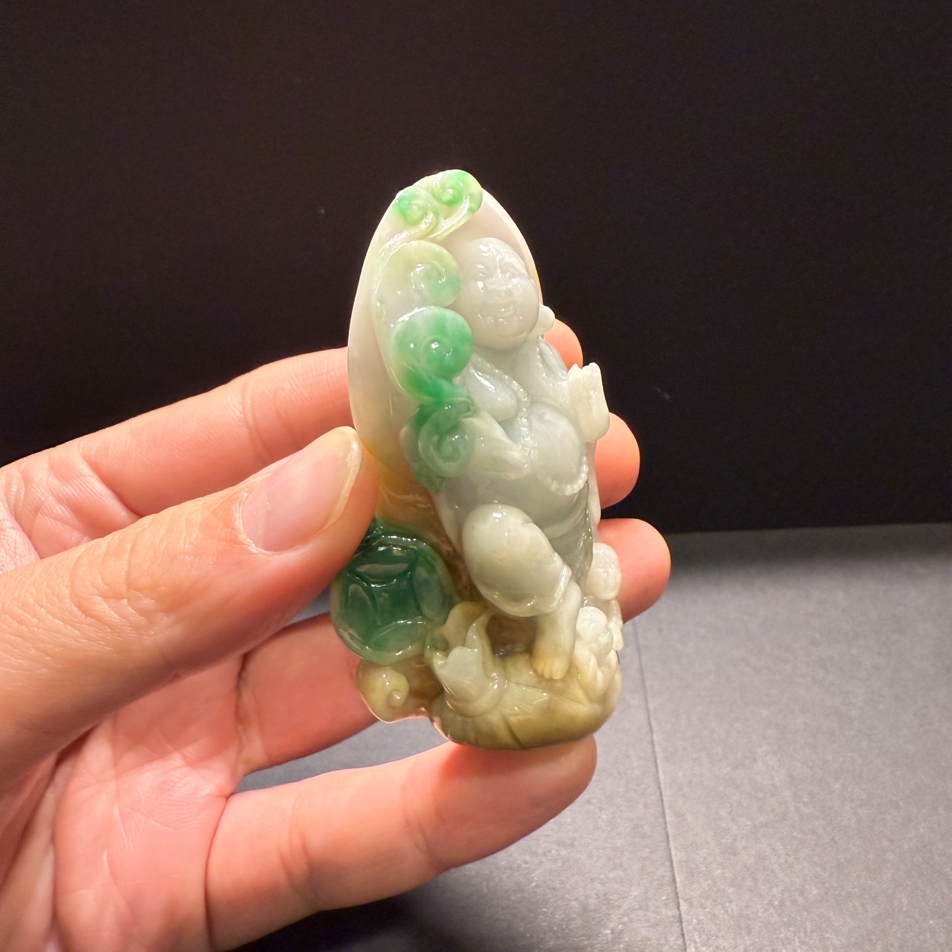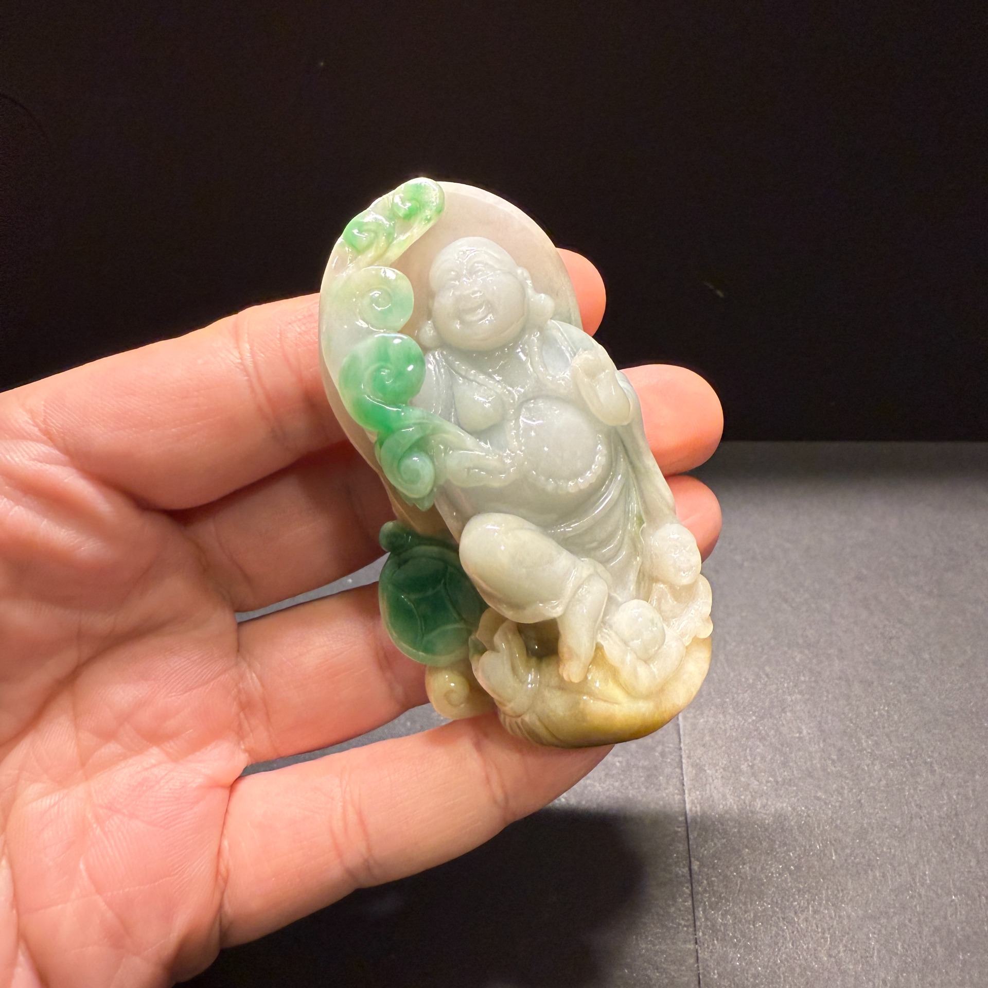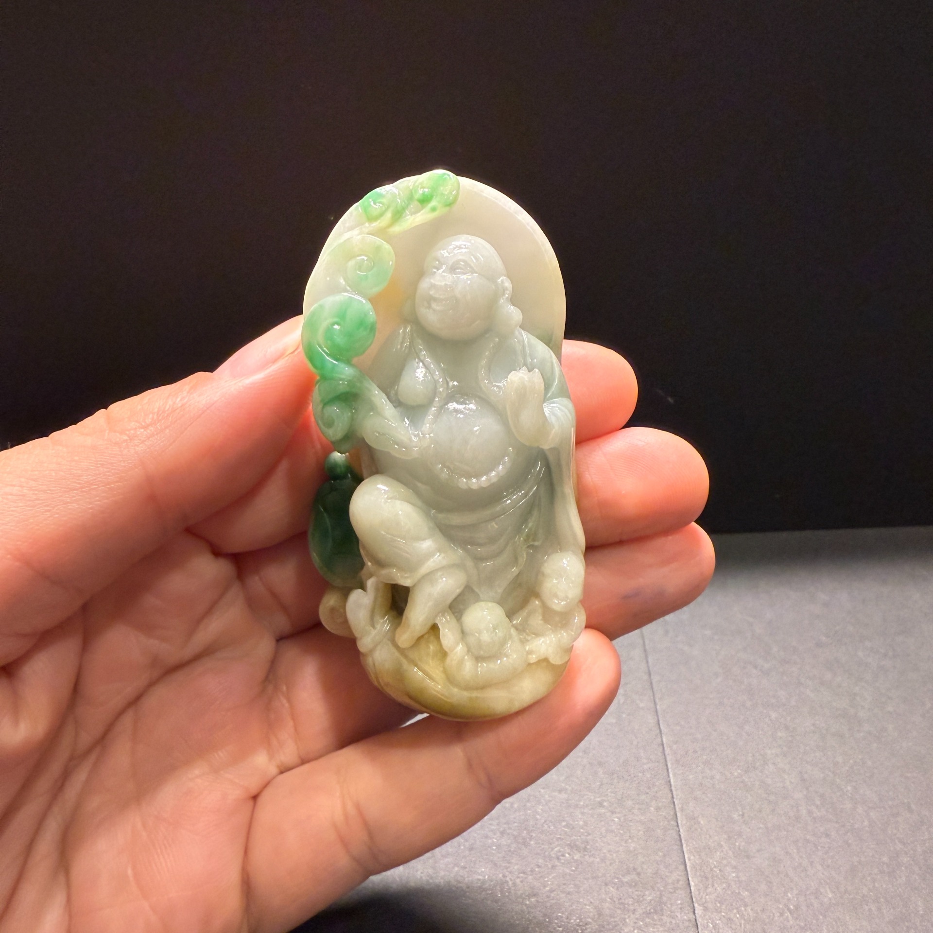 瀚玉珠寶 天然緬甸翡翠 三彩彌勒佛 老三彩彌勒 佛公 天然緬甸玉