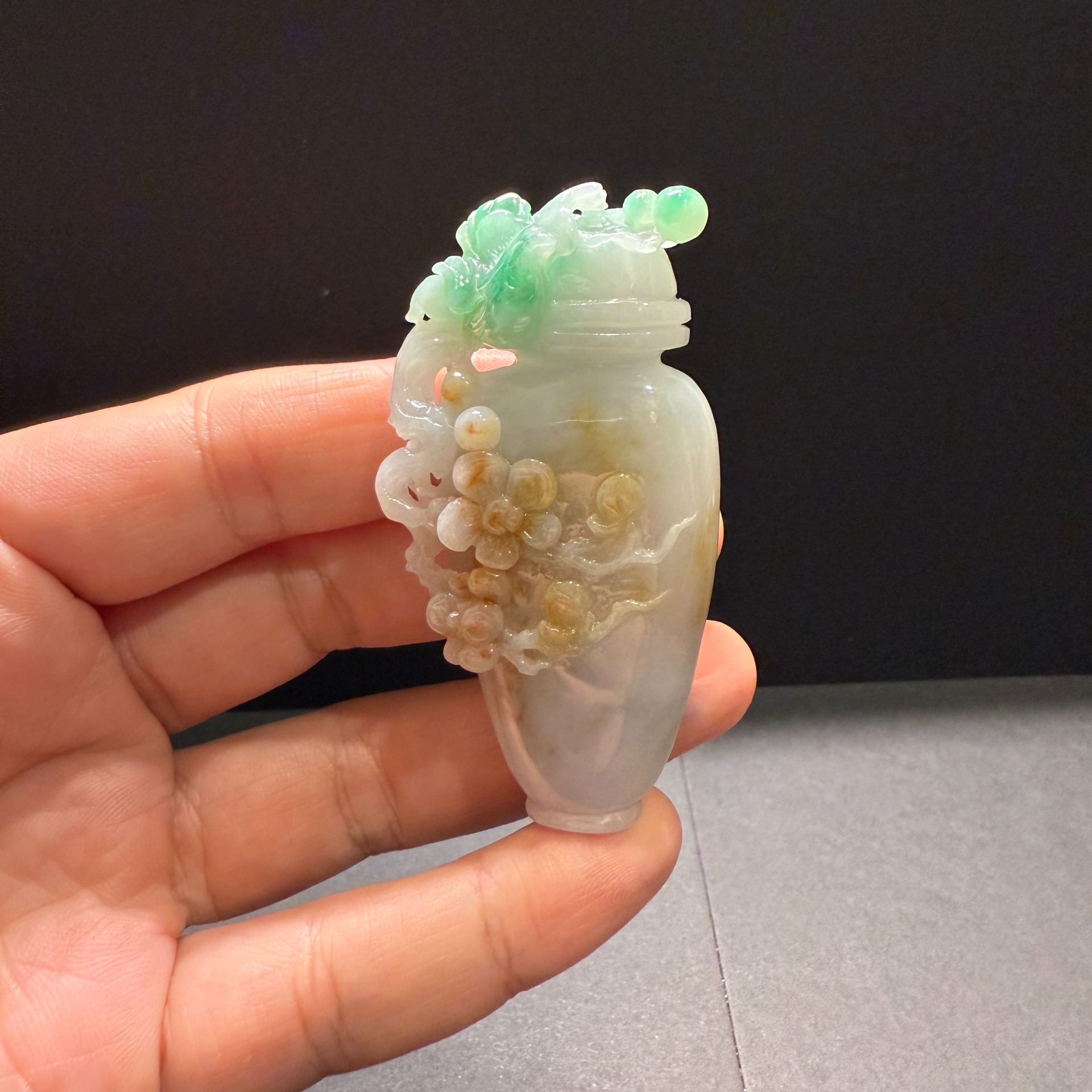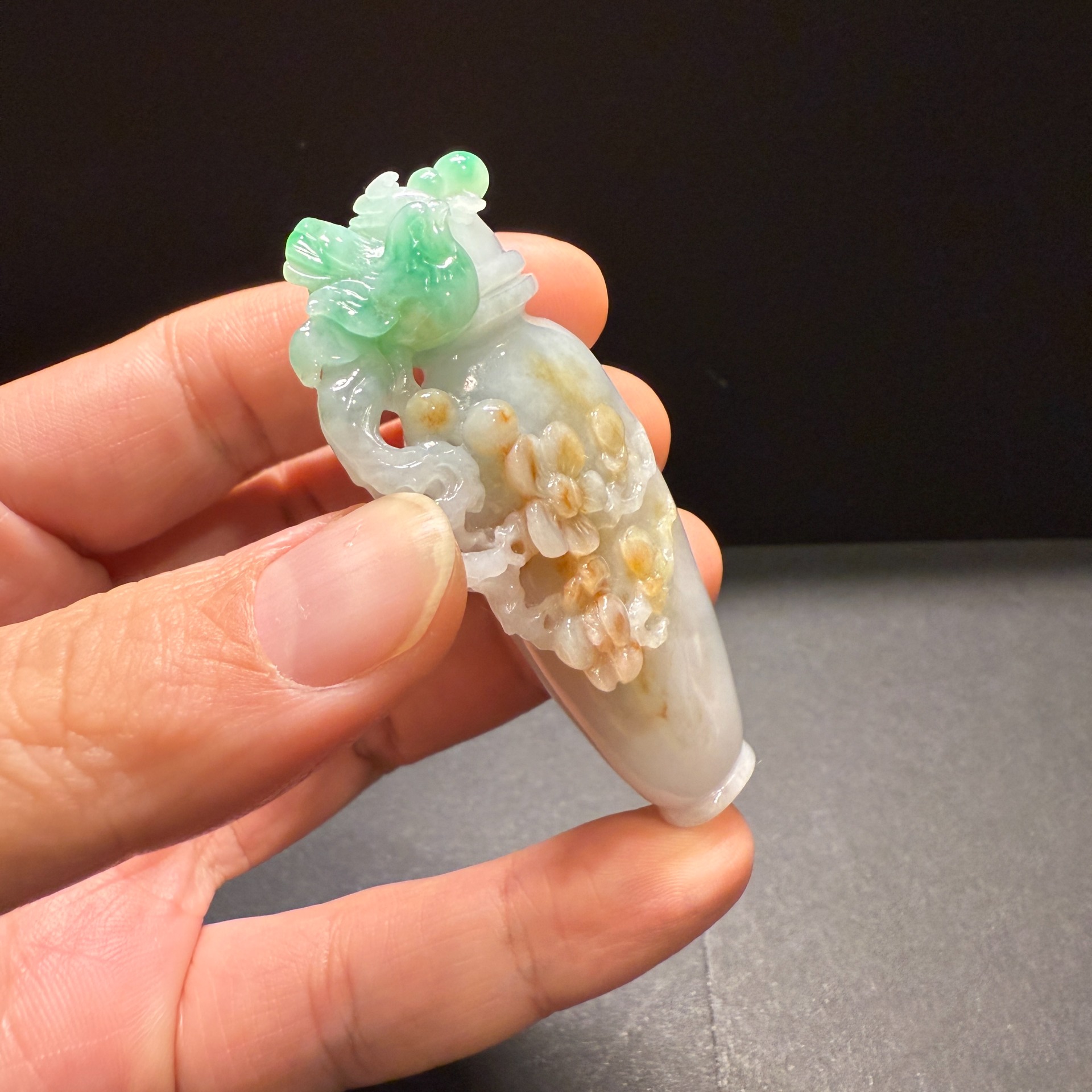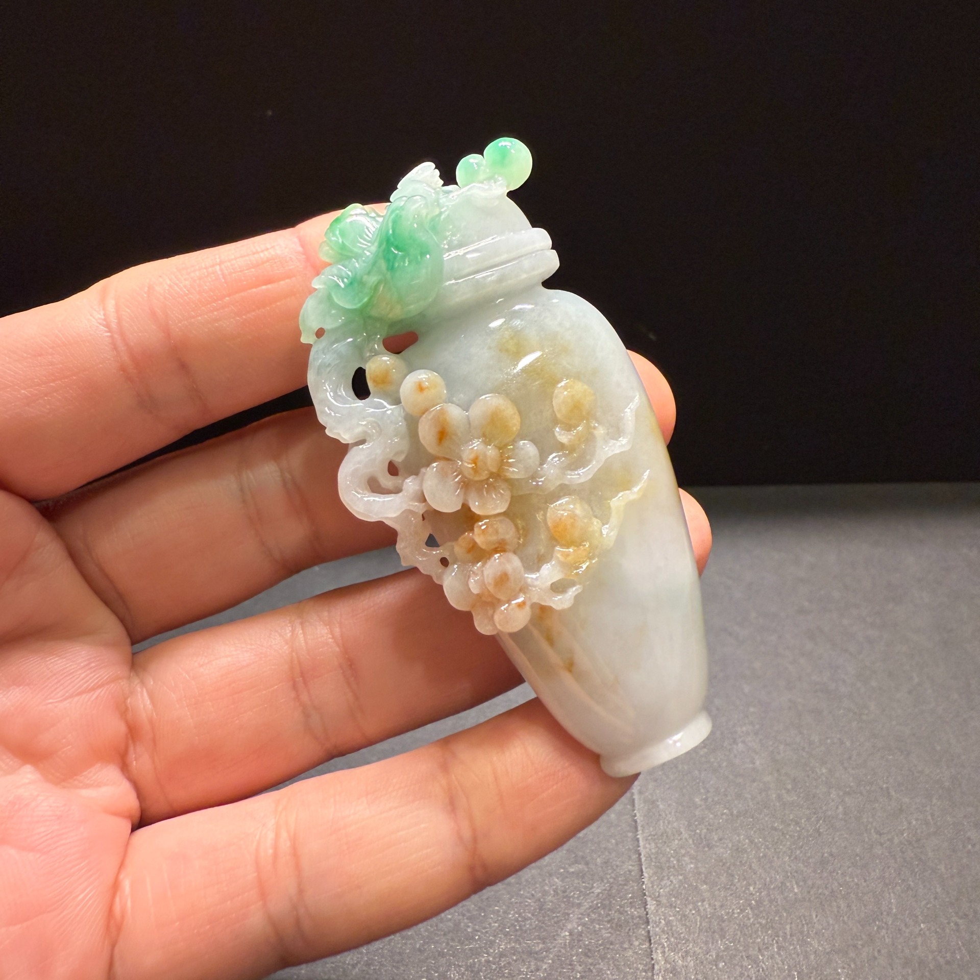 瀚玉珠寶 天然緬甸翡翠 三彩花瓶擺件 老三彩花瓶 壺 花開富貴 緬甸玉三彩 黃加綠