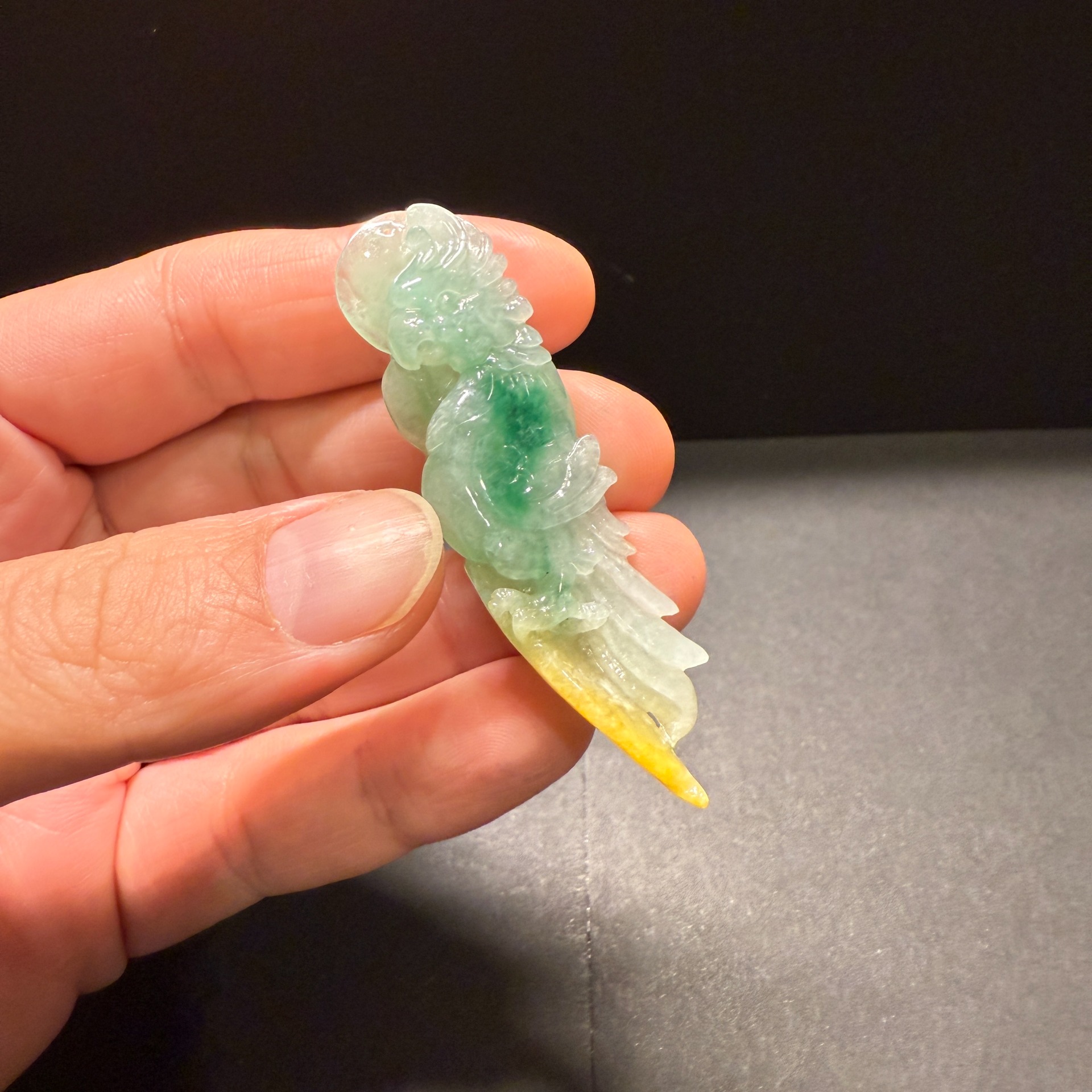 瀚玉珠寶 天然緬甸翡翠 三彩鸚鵡墜子 黃加綠 鸚鵡 天然緬甸玉