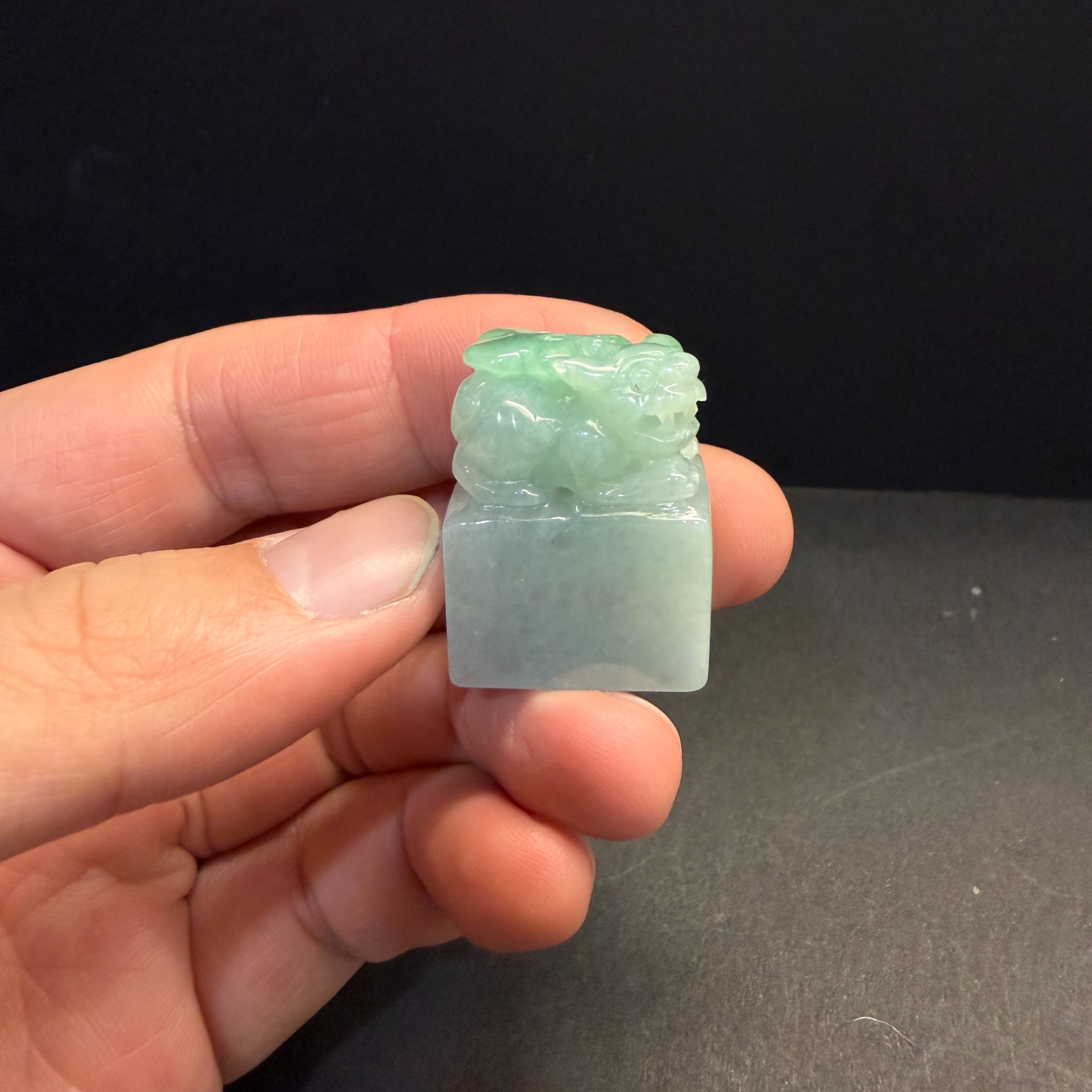 瀚玉珠寶 天然緬甸翡翠 特價 胖胖綠貔貅印章 翡翠印章 緬甸玉印章 招財避邪 白底青帶綠印 尺寸:28.4 * 22.2 * 15mm