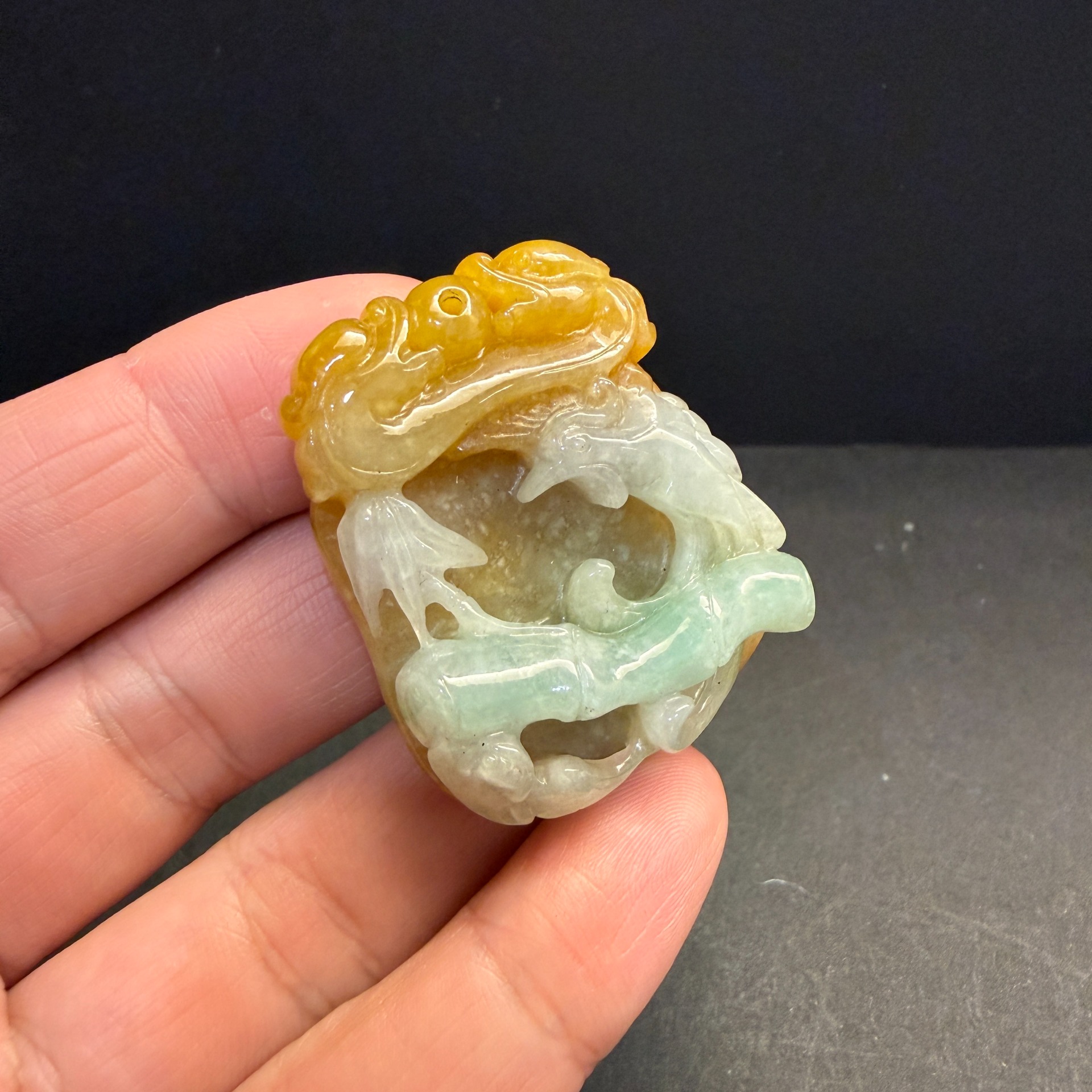 瀚玉珠寶 天然緬甸翡翠 特色件 蜜糖黃 瑞守鳥棲枝頭 巧色黃翡 安居樂業 緬甸玉掛件