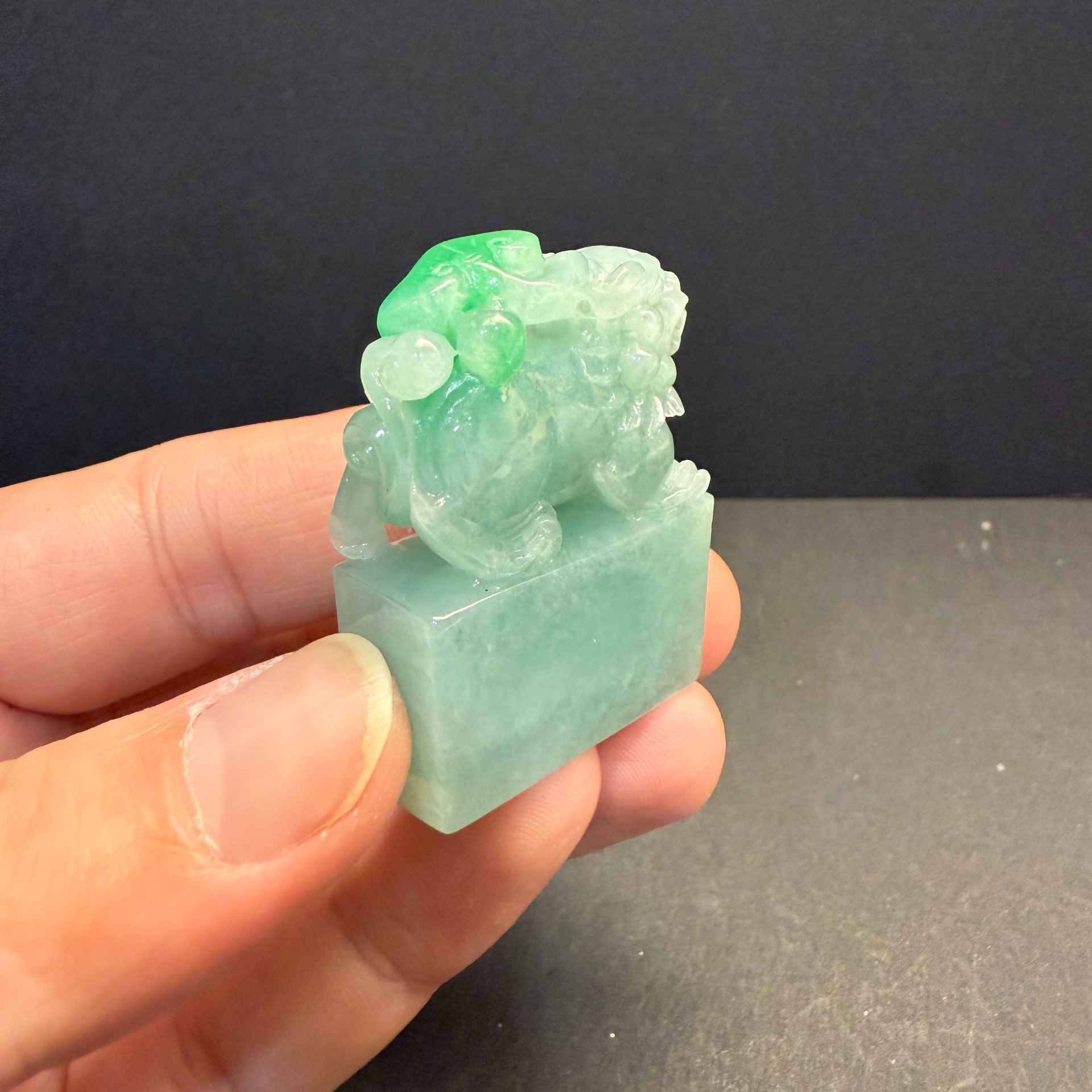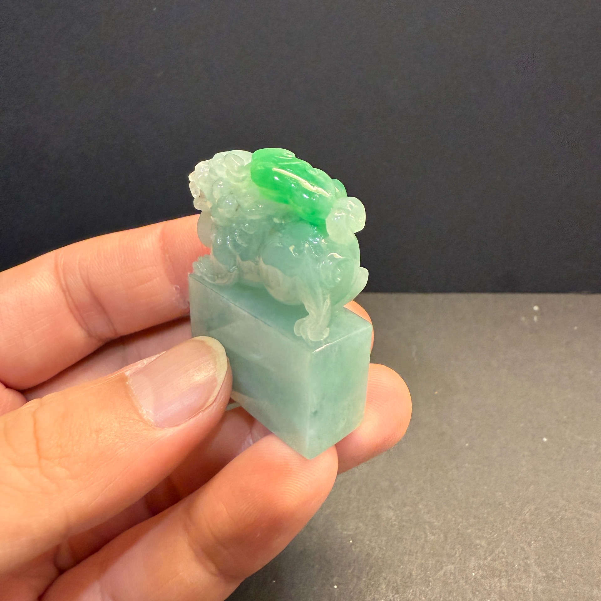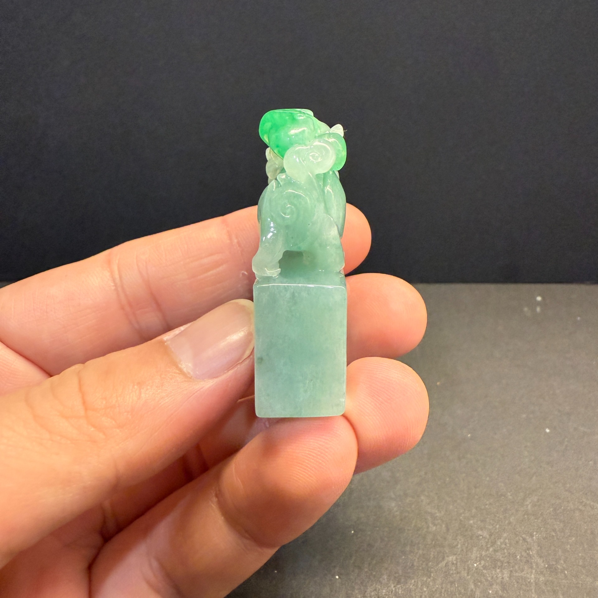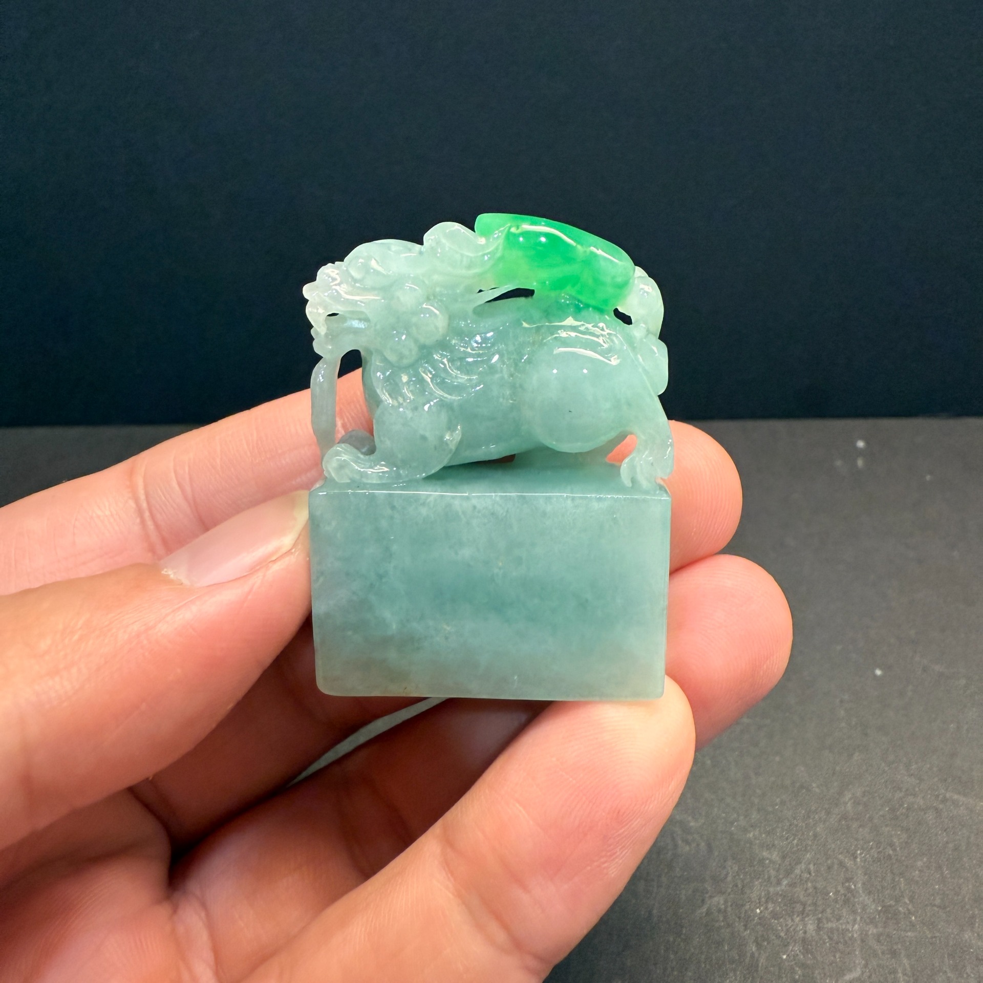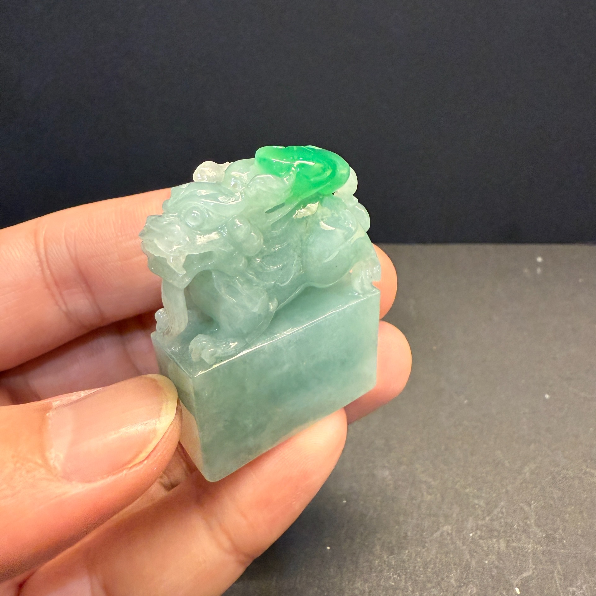瀚玉珠寶 天然翡翠印章 白底青貔貅印 緬甸玉印章