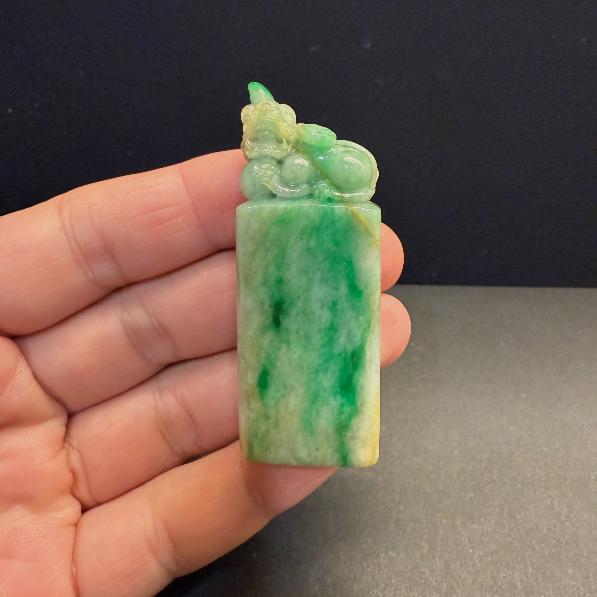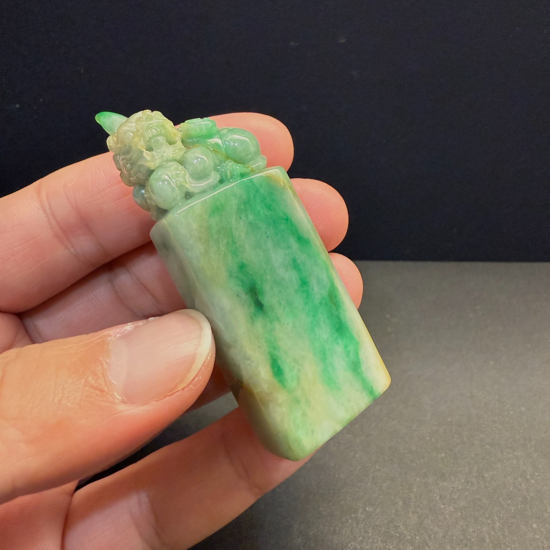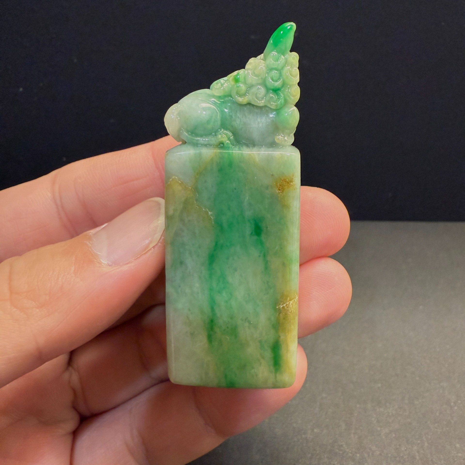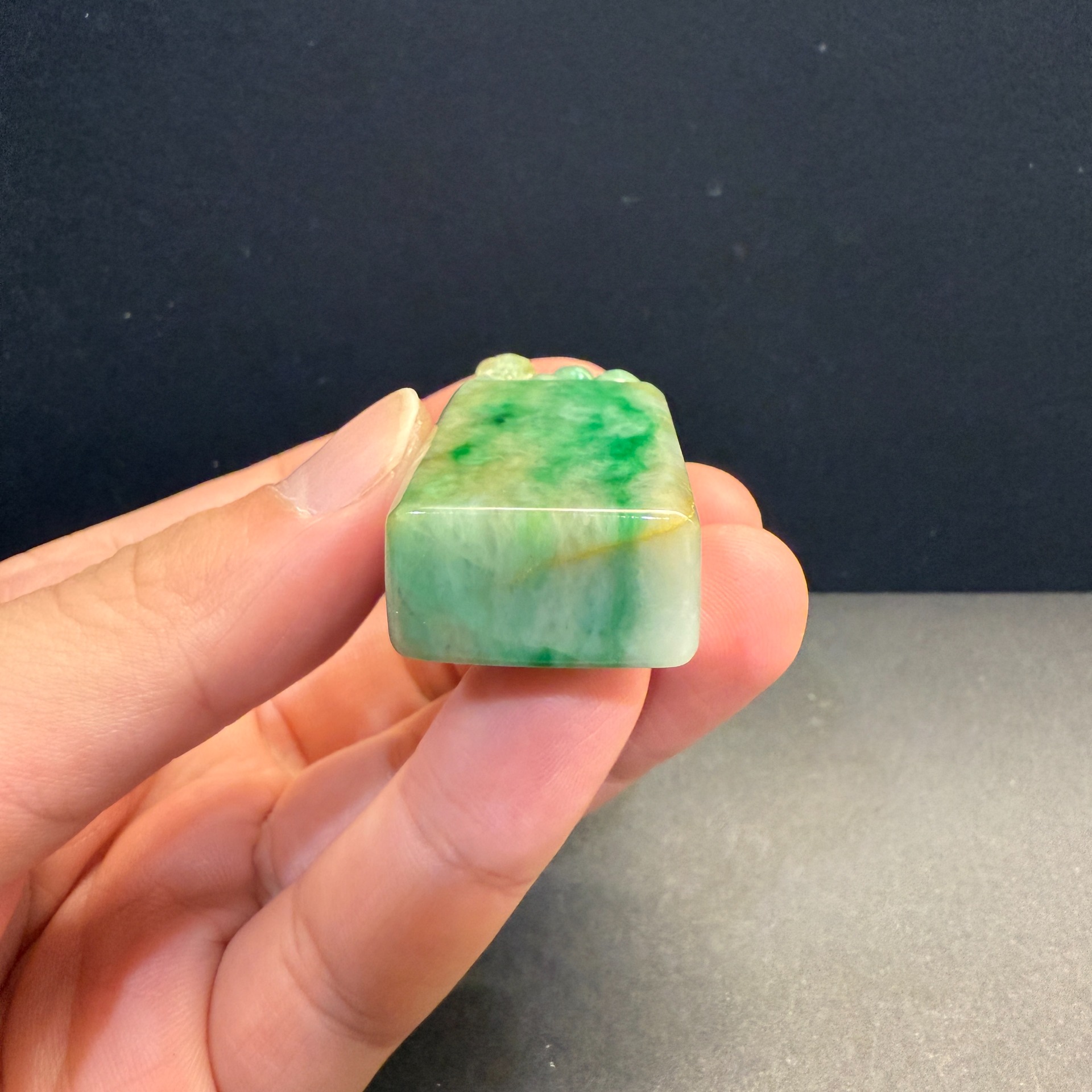 瀚玉珠寶 天然翡翠印章 老三彩獅子印章 緬甸玉印章 寶獅戲球 玉石印章 手工印章 保平安 精品印章