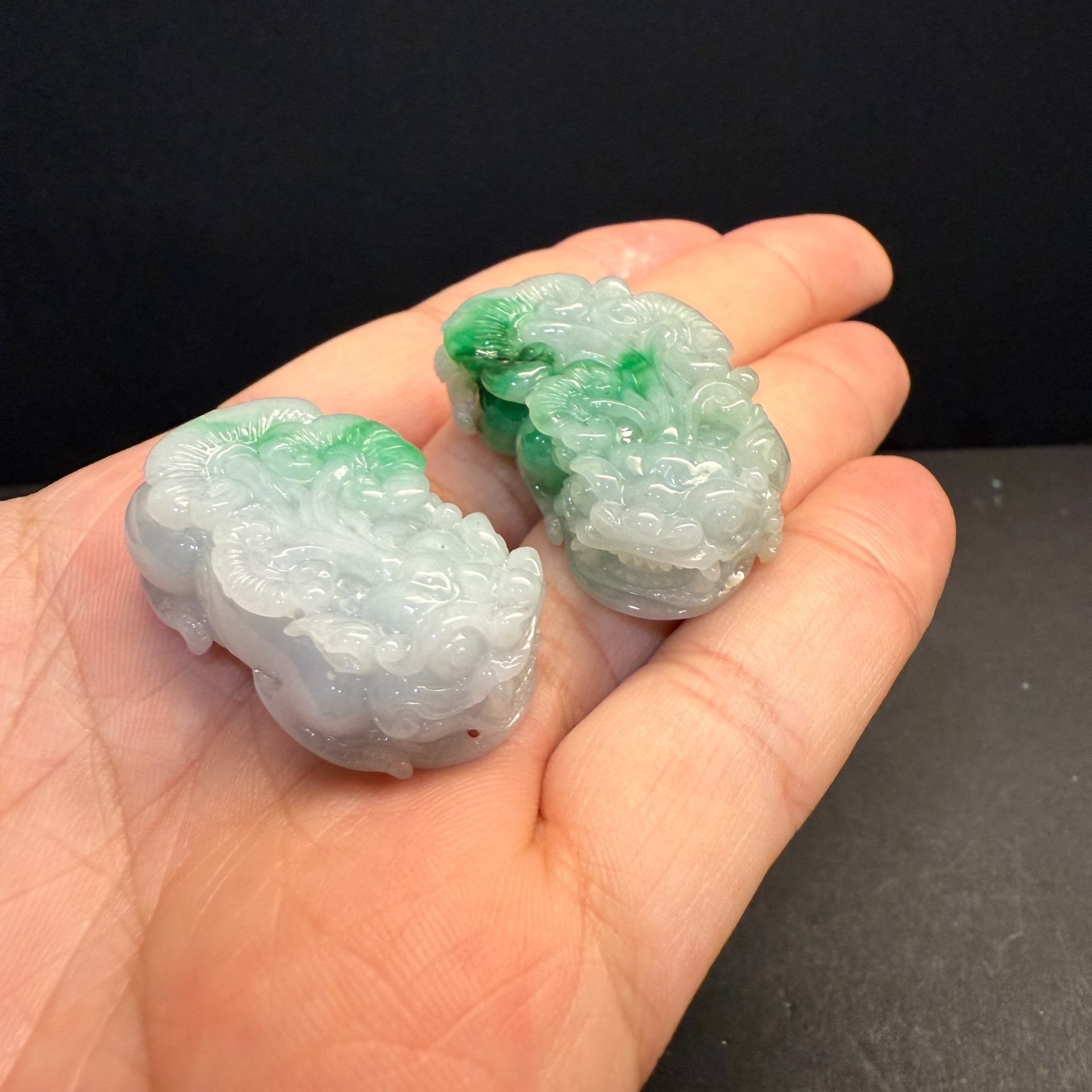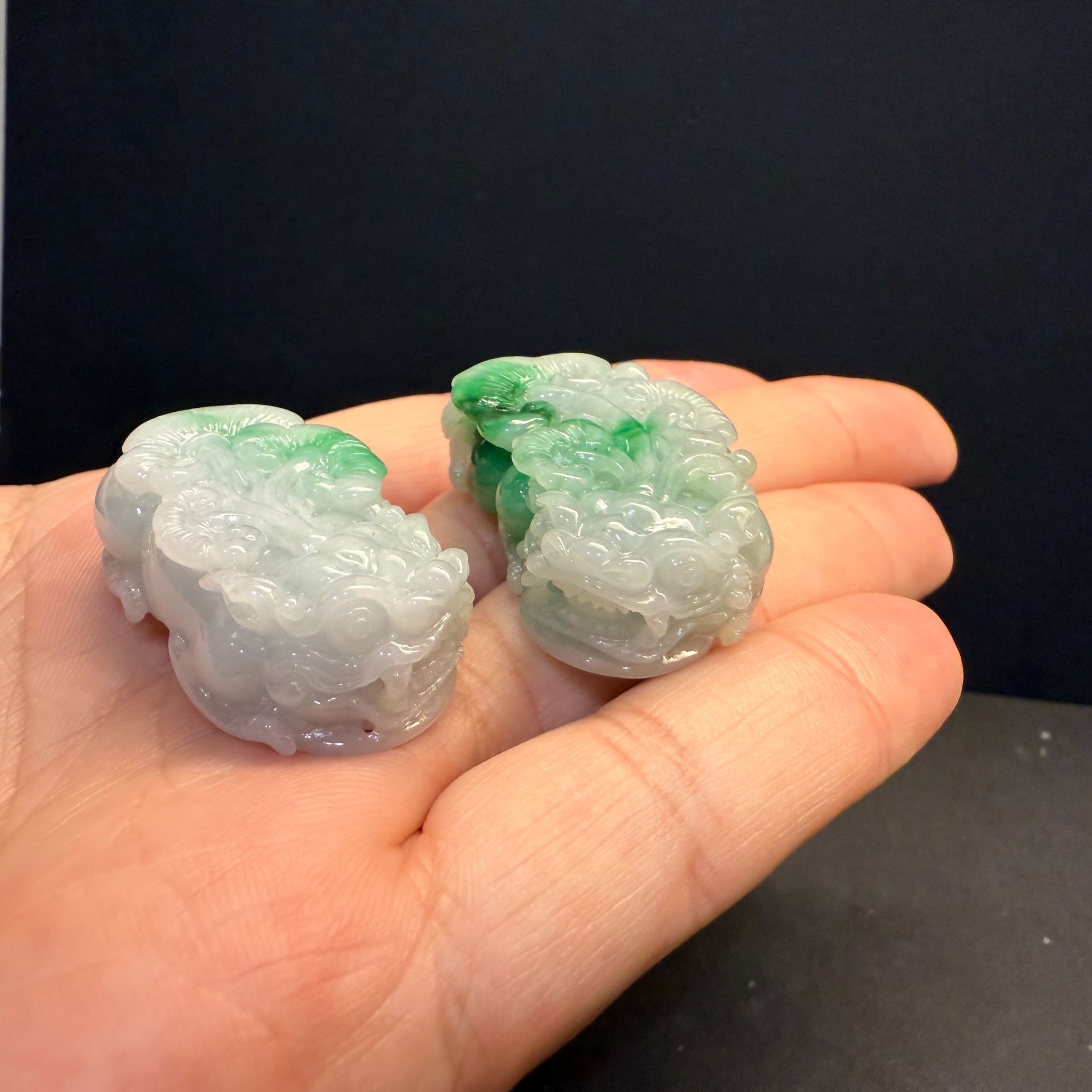 瀚玉珠寶 天然翡翠貔貅 白底青貔貅一對 公母貔貅 一起幫主人咬進天下財富! 天然翡翠貔貅一對