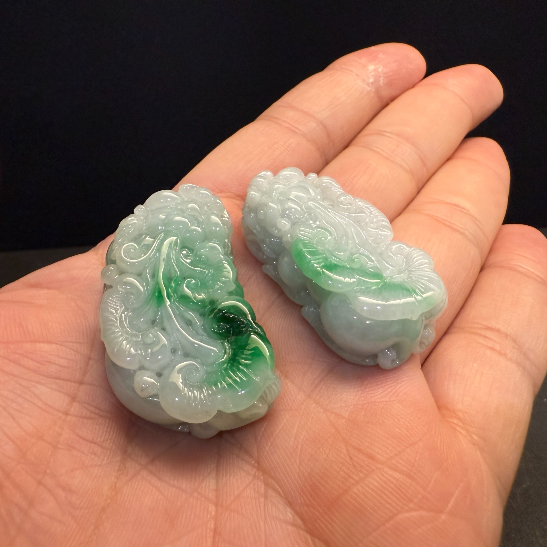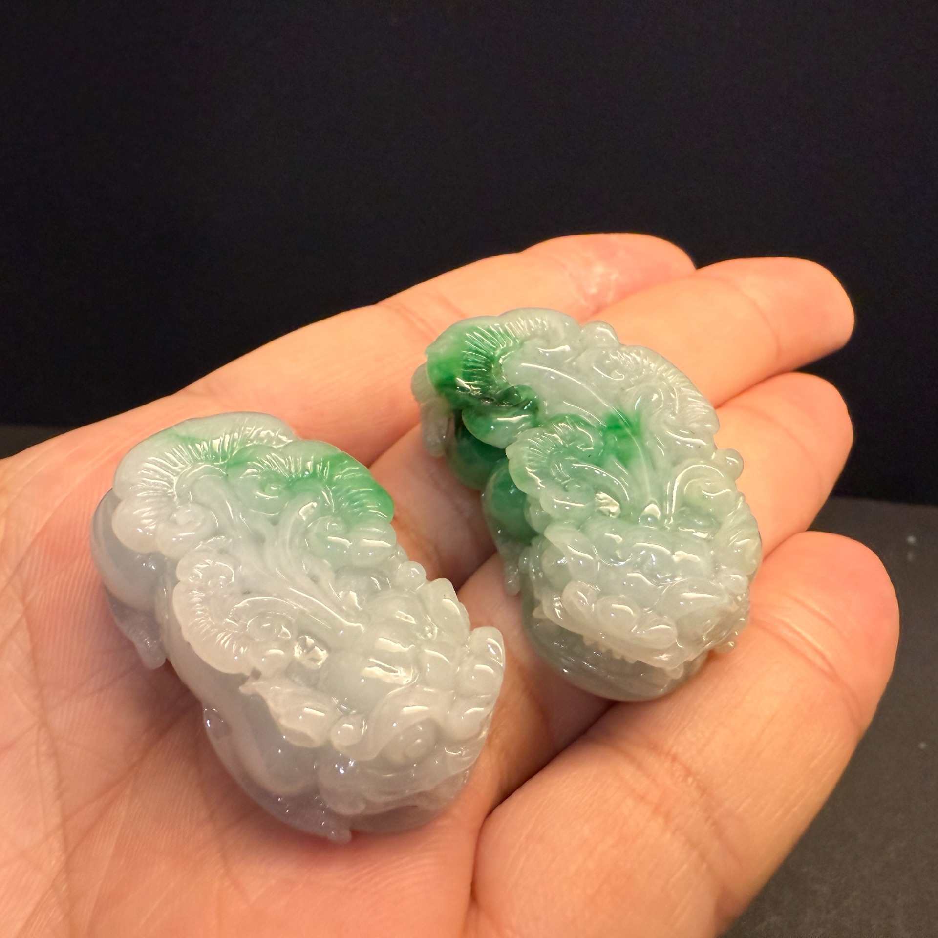 瀚玉珠寶 天然翡翠貔貅 白底青貔貅一對 公母貔貅 一起幫主人咬進天下財富! 天然翡翠貔貅一對\