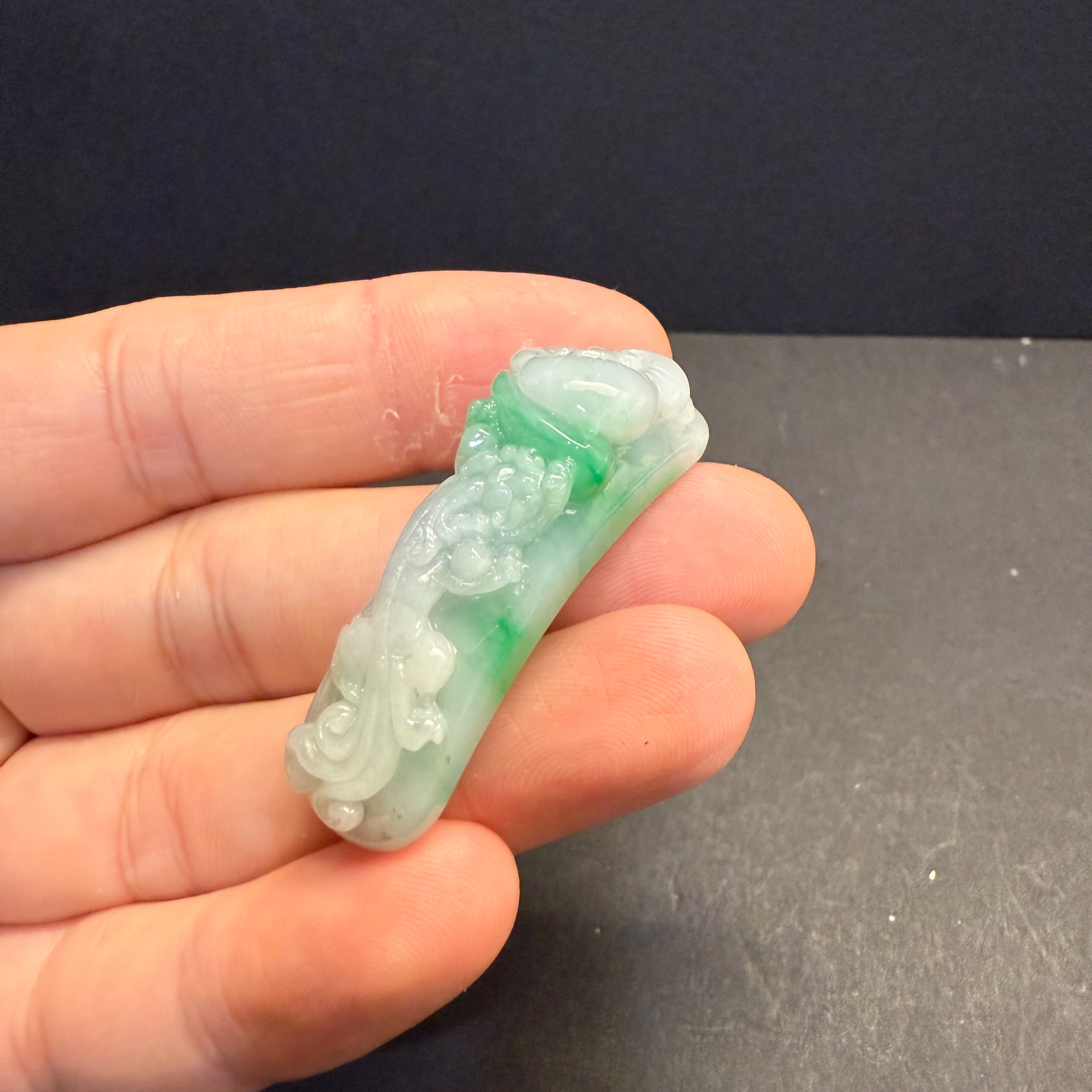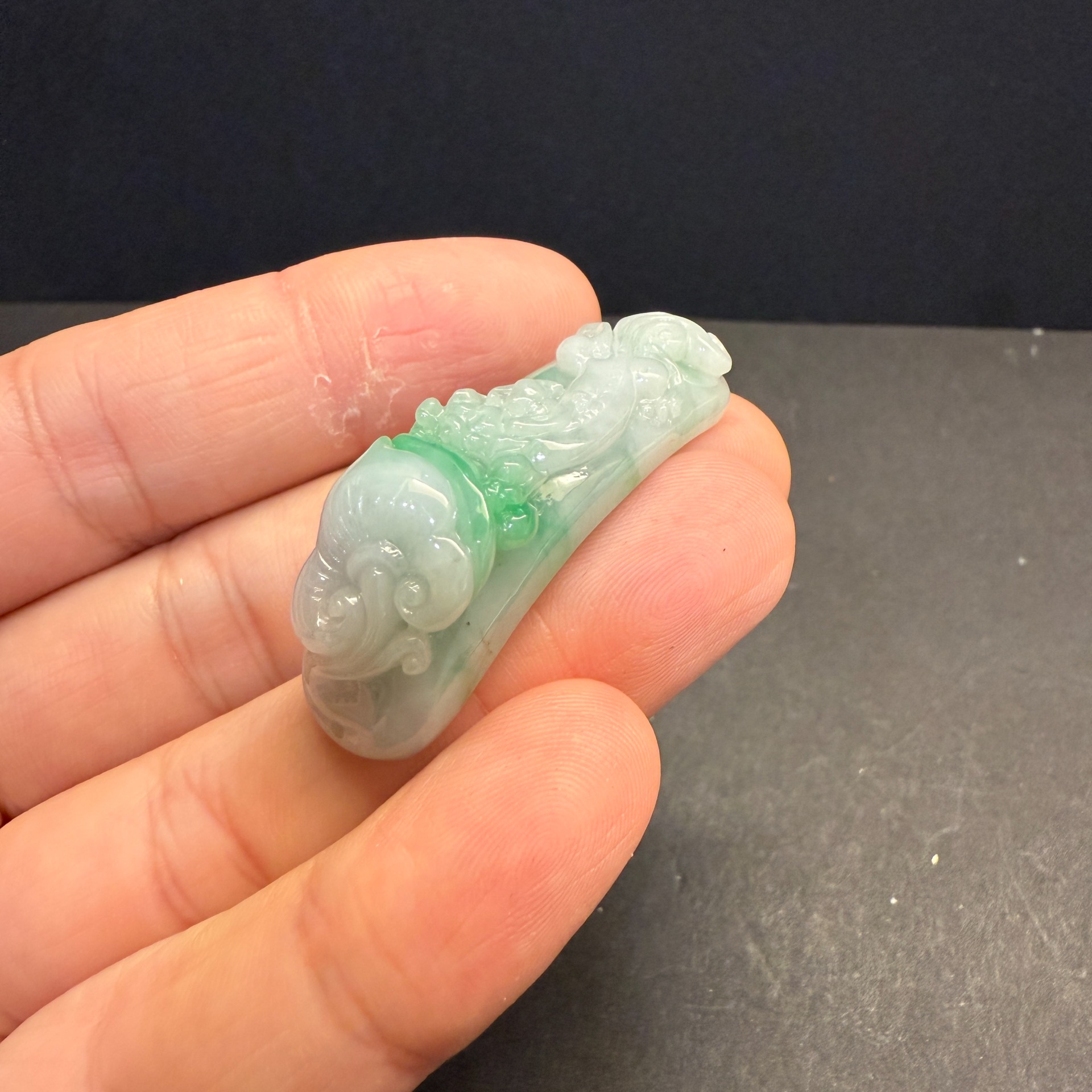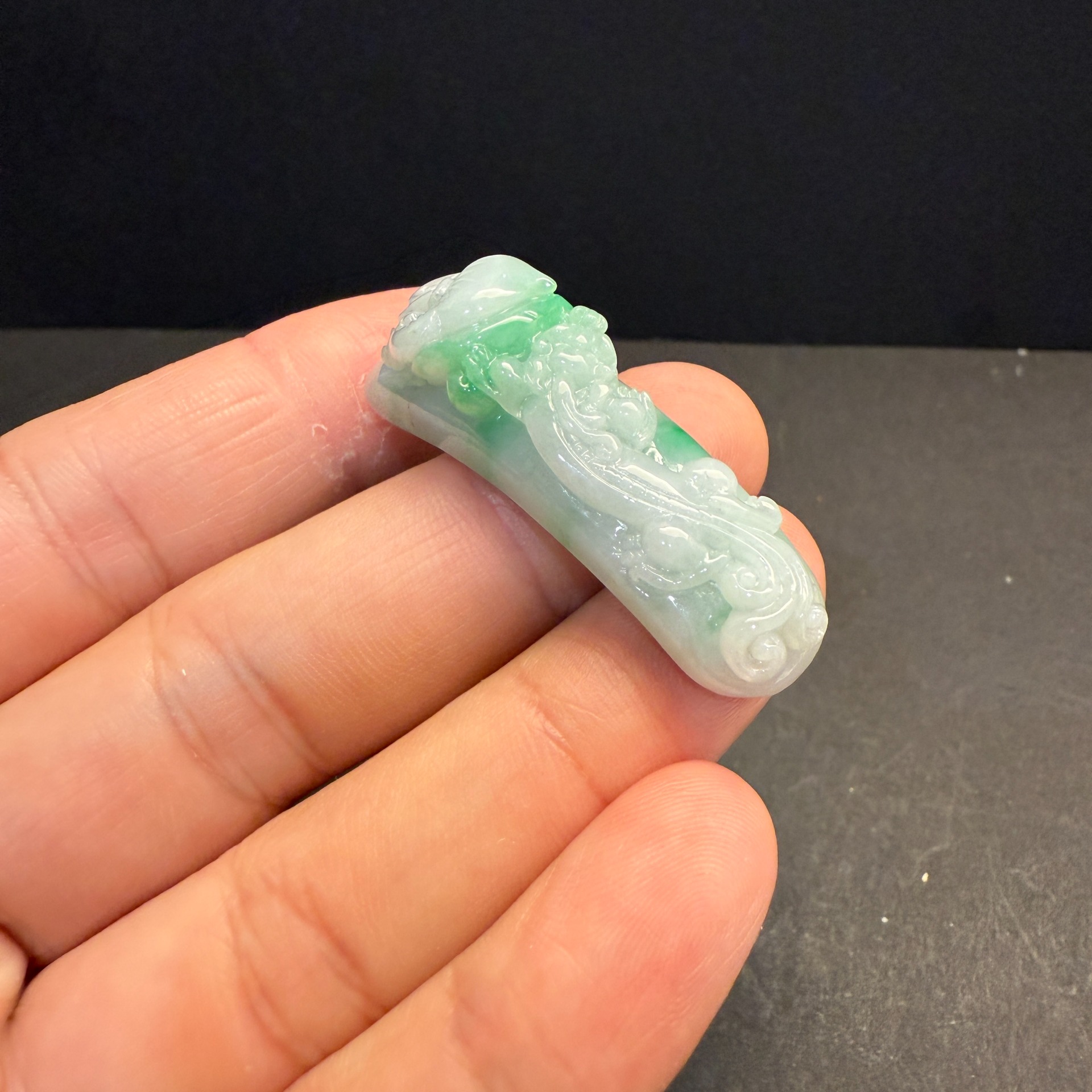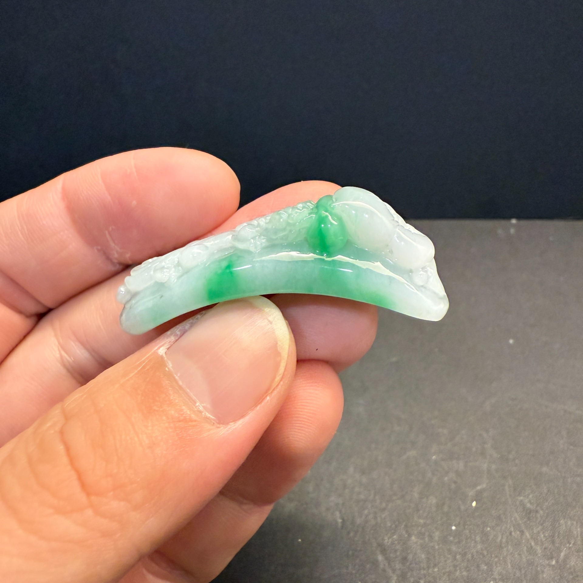 瀚玉珠寶 天然翡翠 小精品 白底青翡翠龍勾 龍帶勾 顏色清爽搶眼 天然A貨緬甸玉