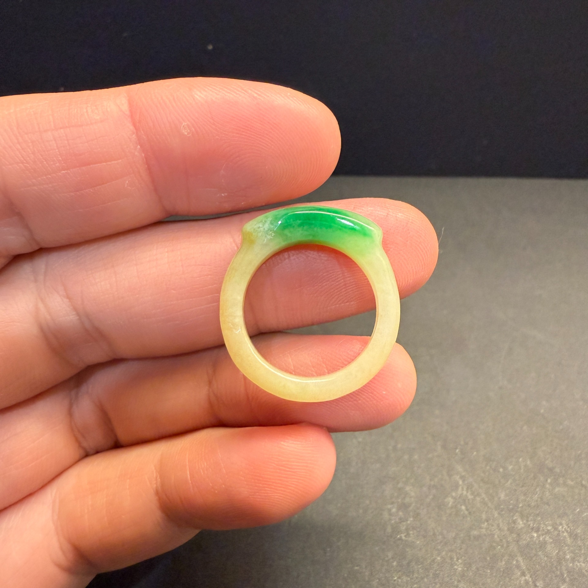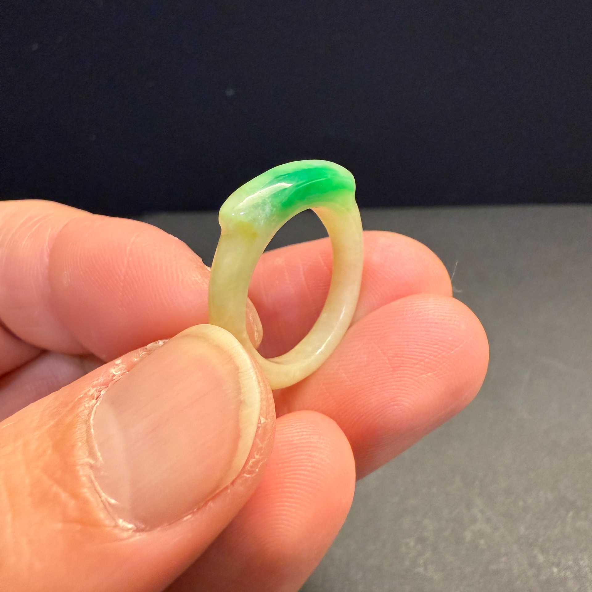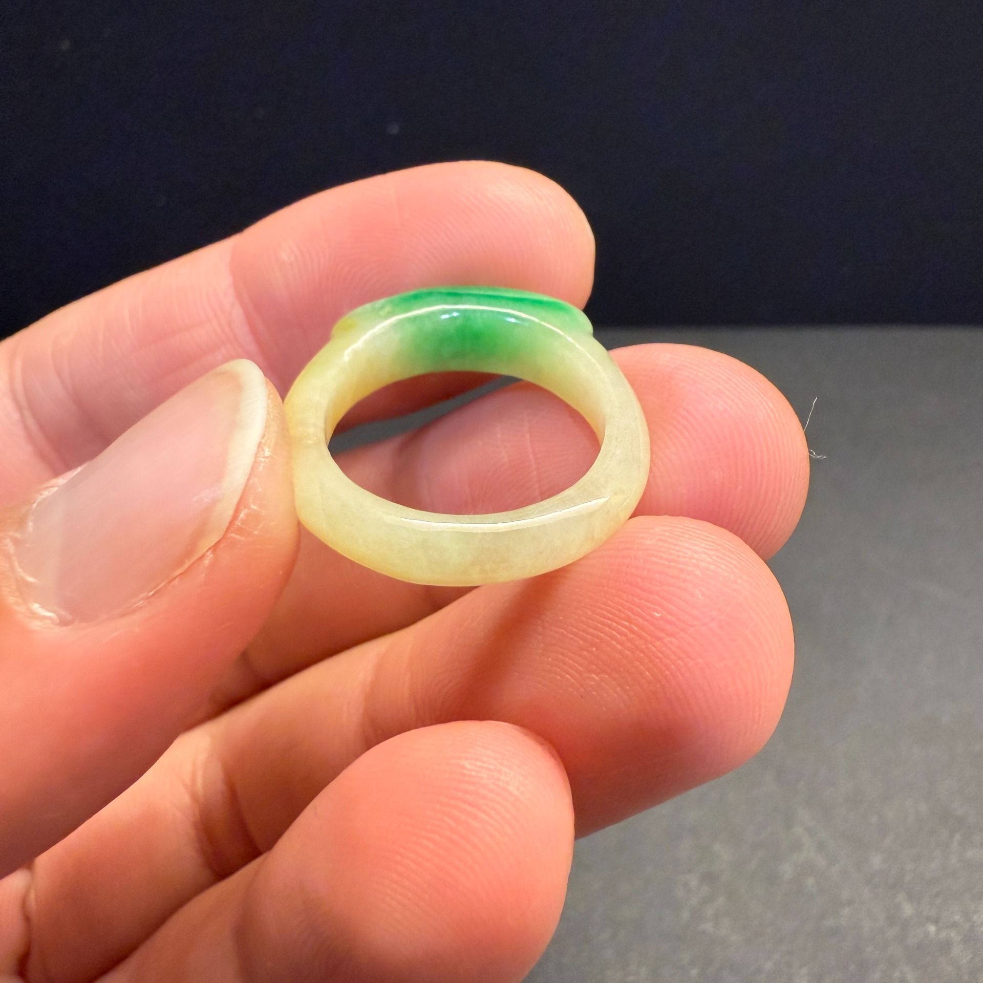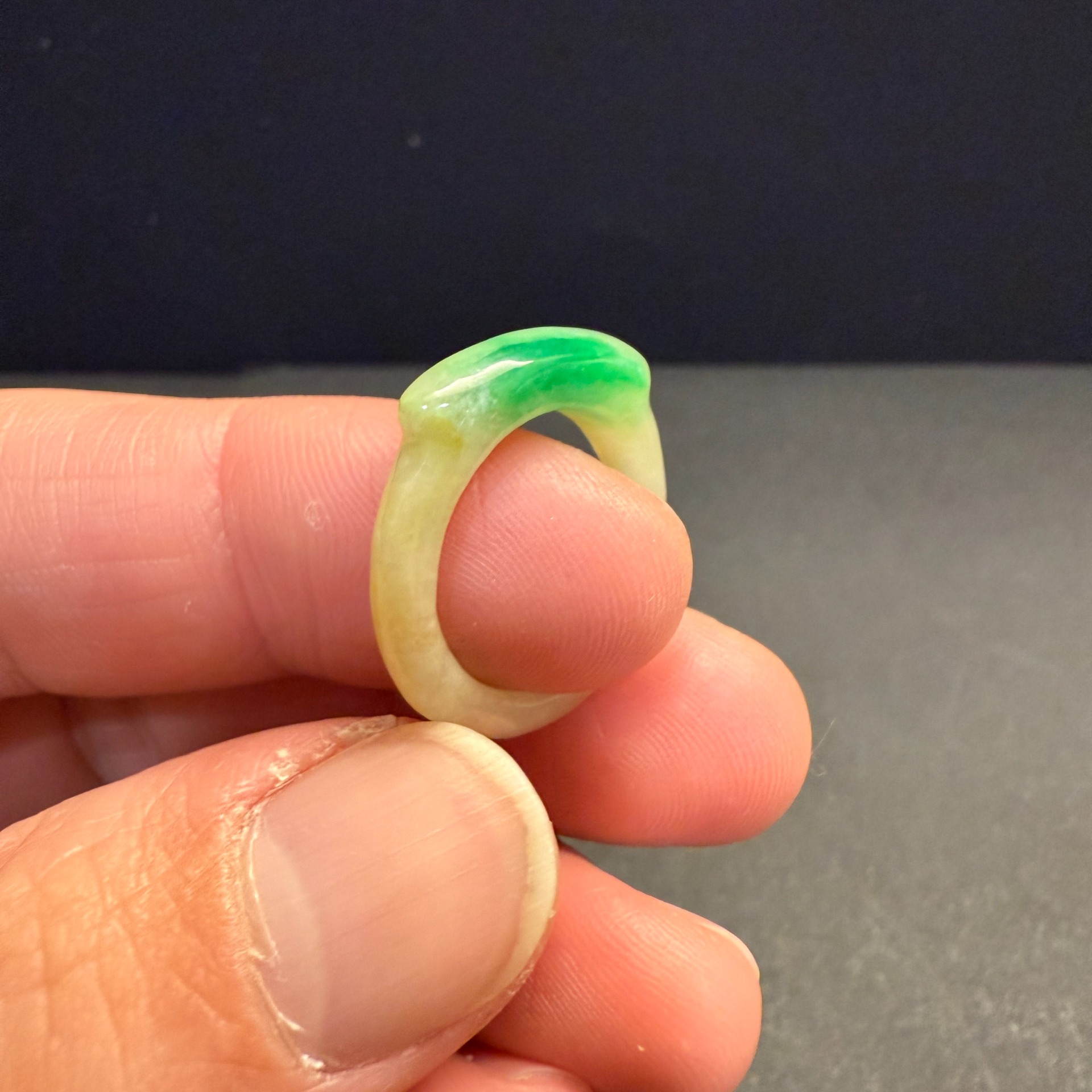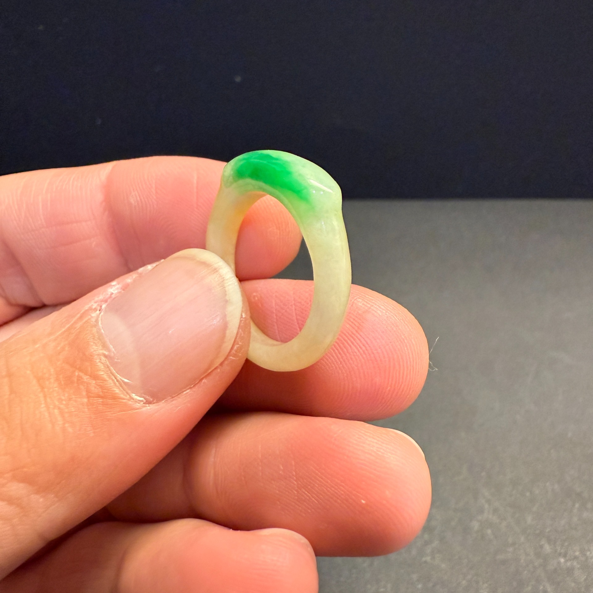 瀚玉珠寶 天然翡翠 老三彩辣綠馬鞍戒指 老坑綠色 天然緬甸玉戒指