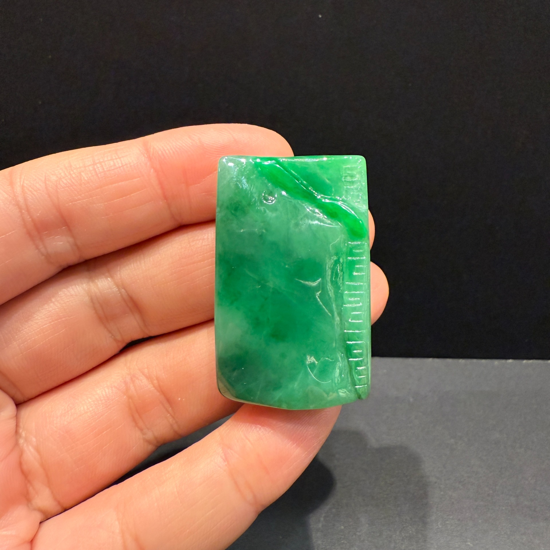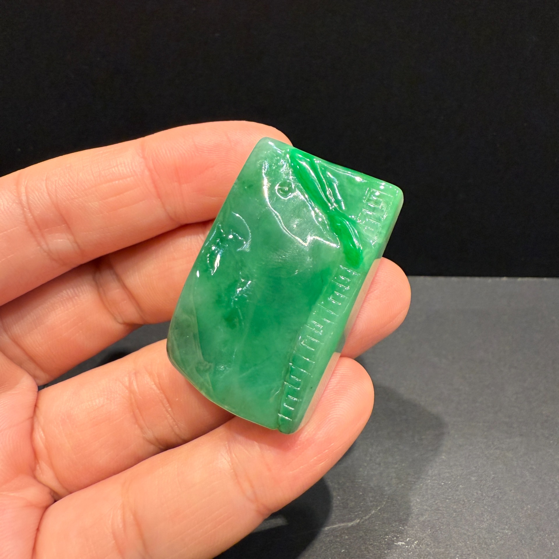 瀚玉珠寶 天然A貨翡翠 滿綠仿古無事牌 有種有色 天然緬甸玉牌 出入平安無事
