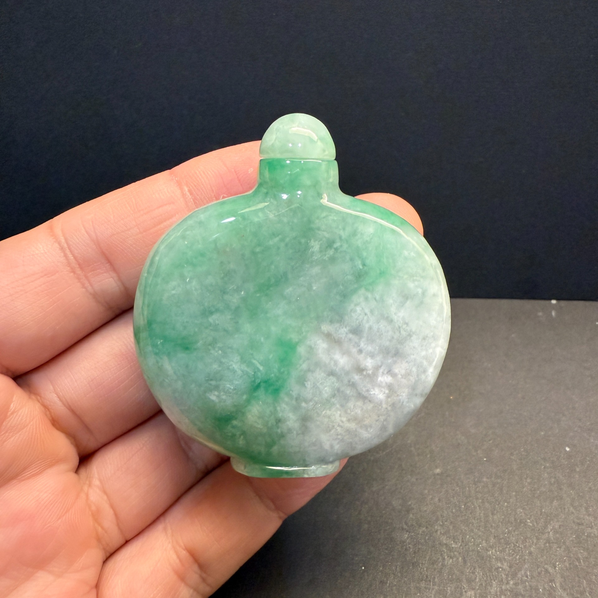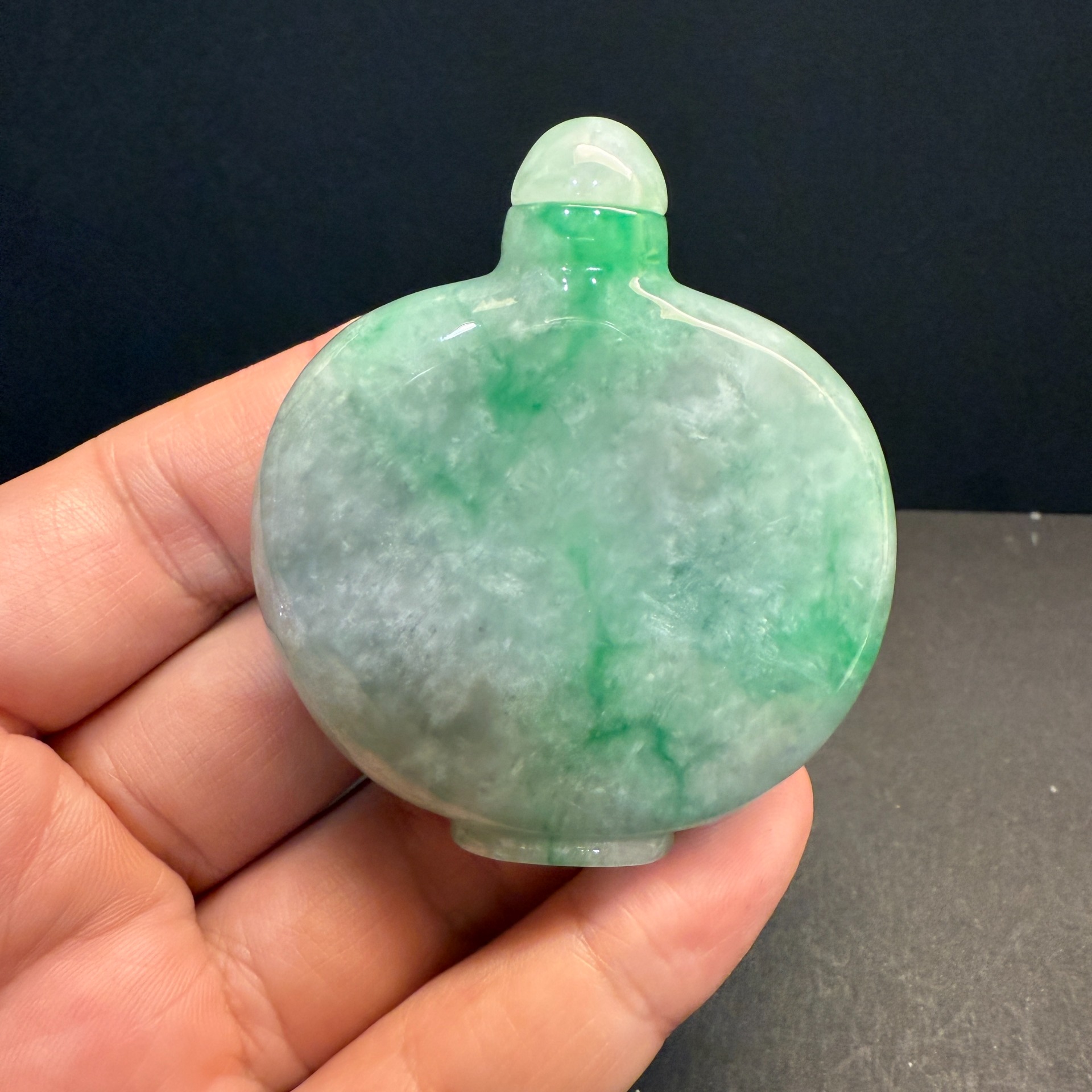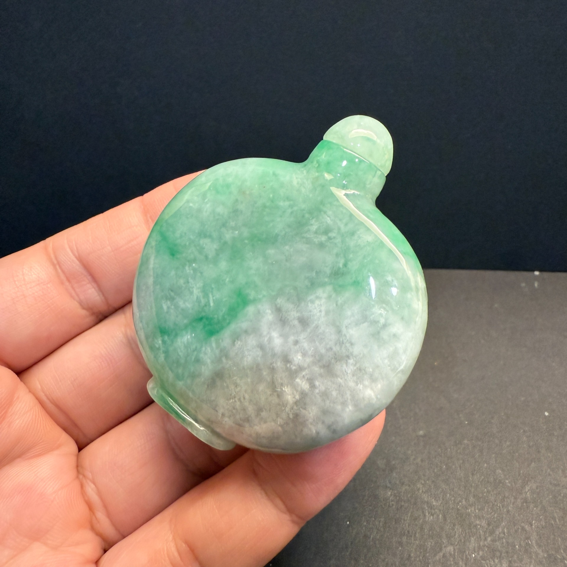 瀚玉珠寶 天然A貨翡翠 翡翠鼻煙壺 白底青 緬甸玉鼻烟壺