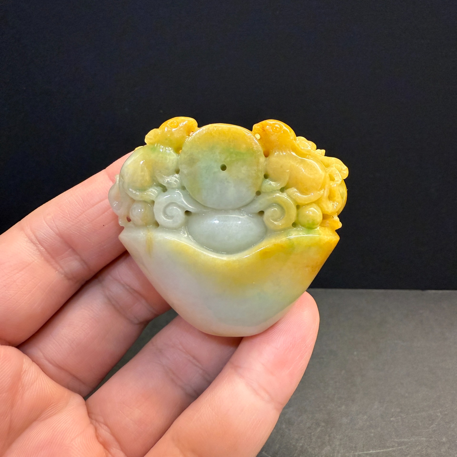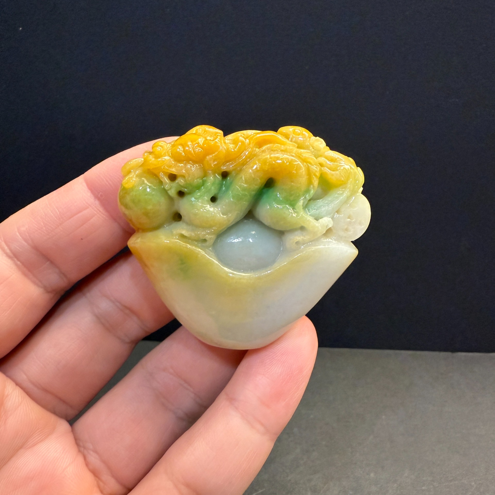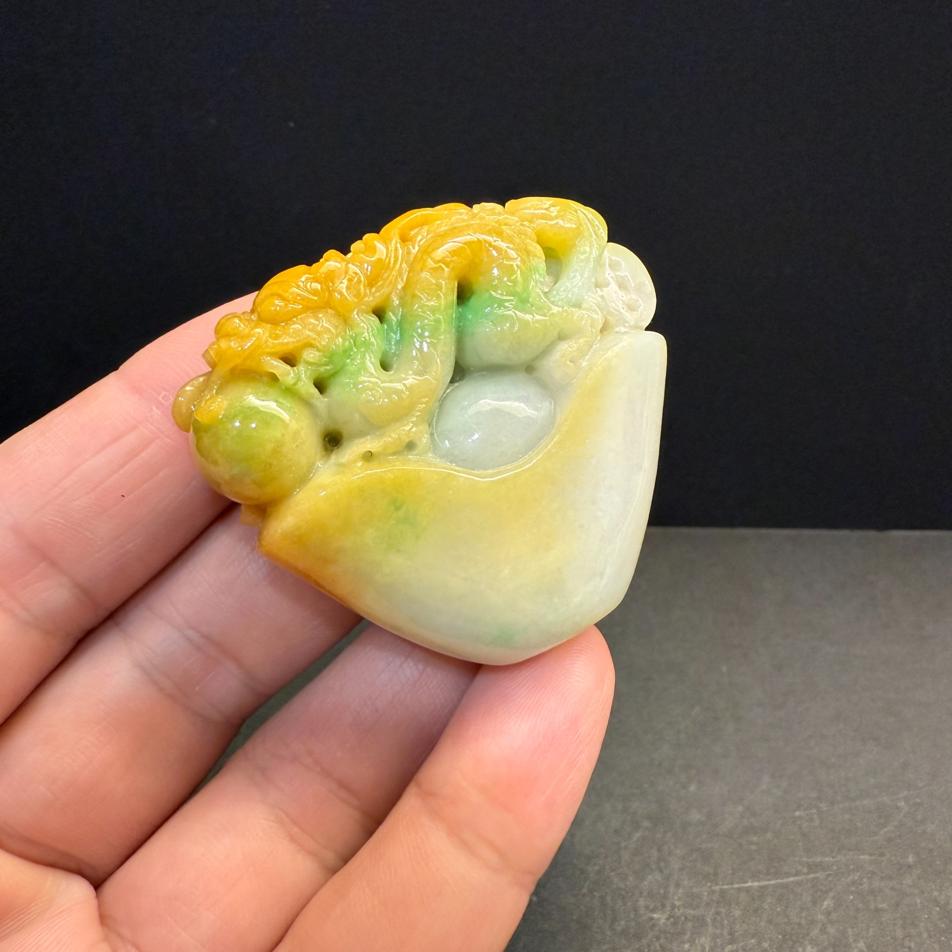 瀚玉珠寶 天然A貨翡翠 三彩龍咬珠元寶 緬甸玉小擺件 老三彩 招財進寶 龍